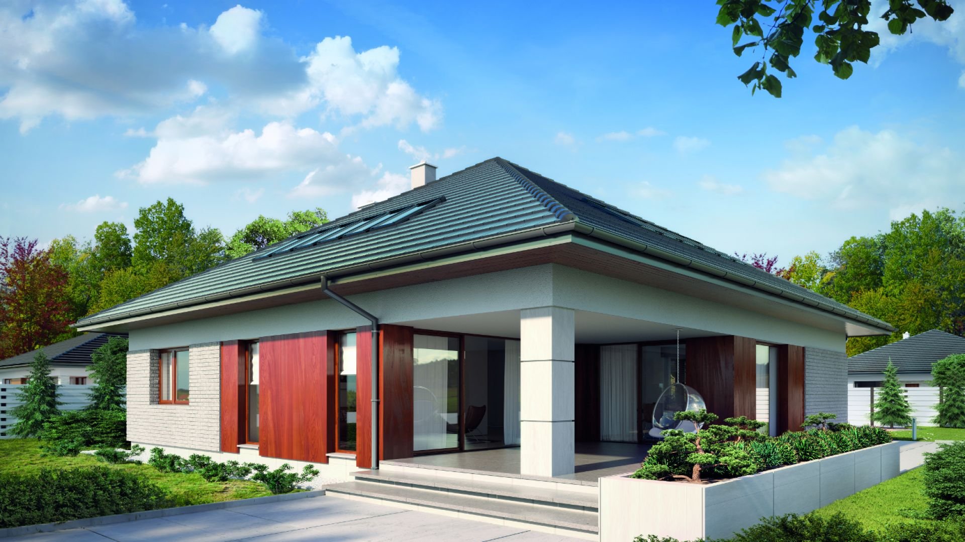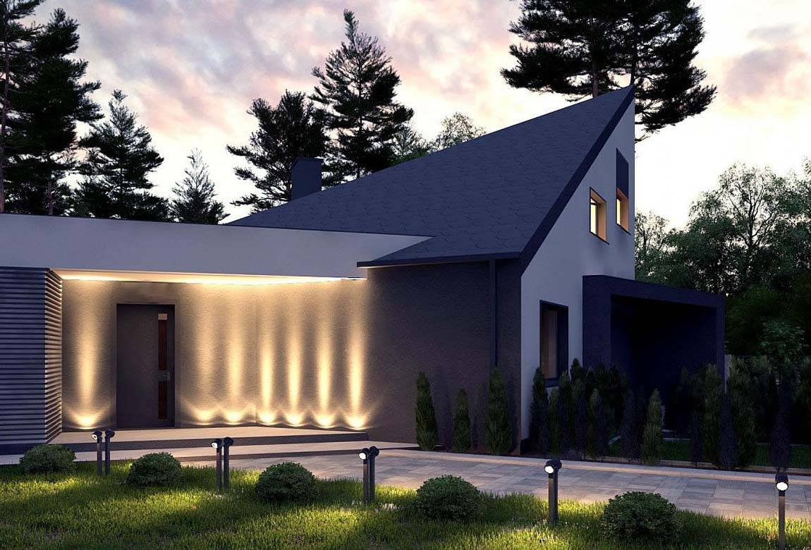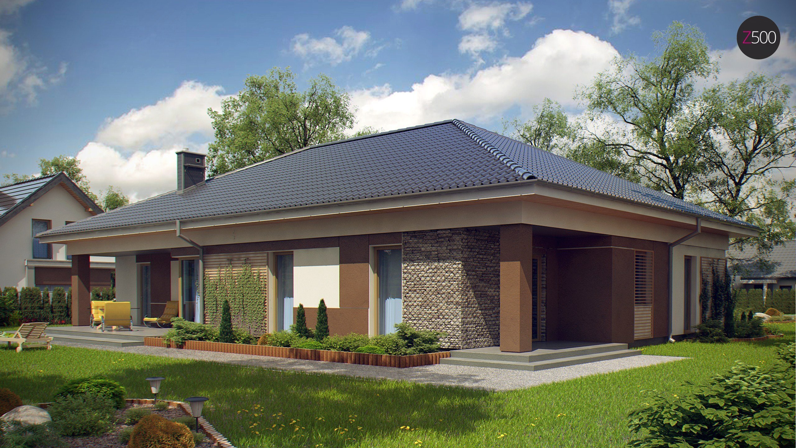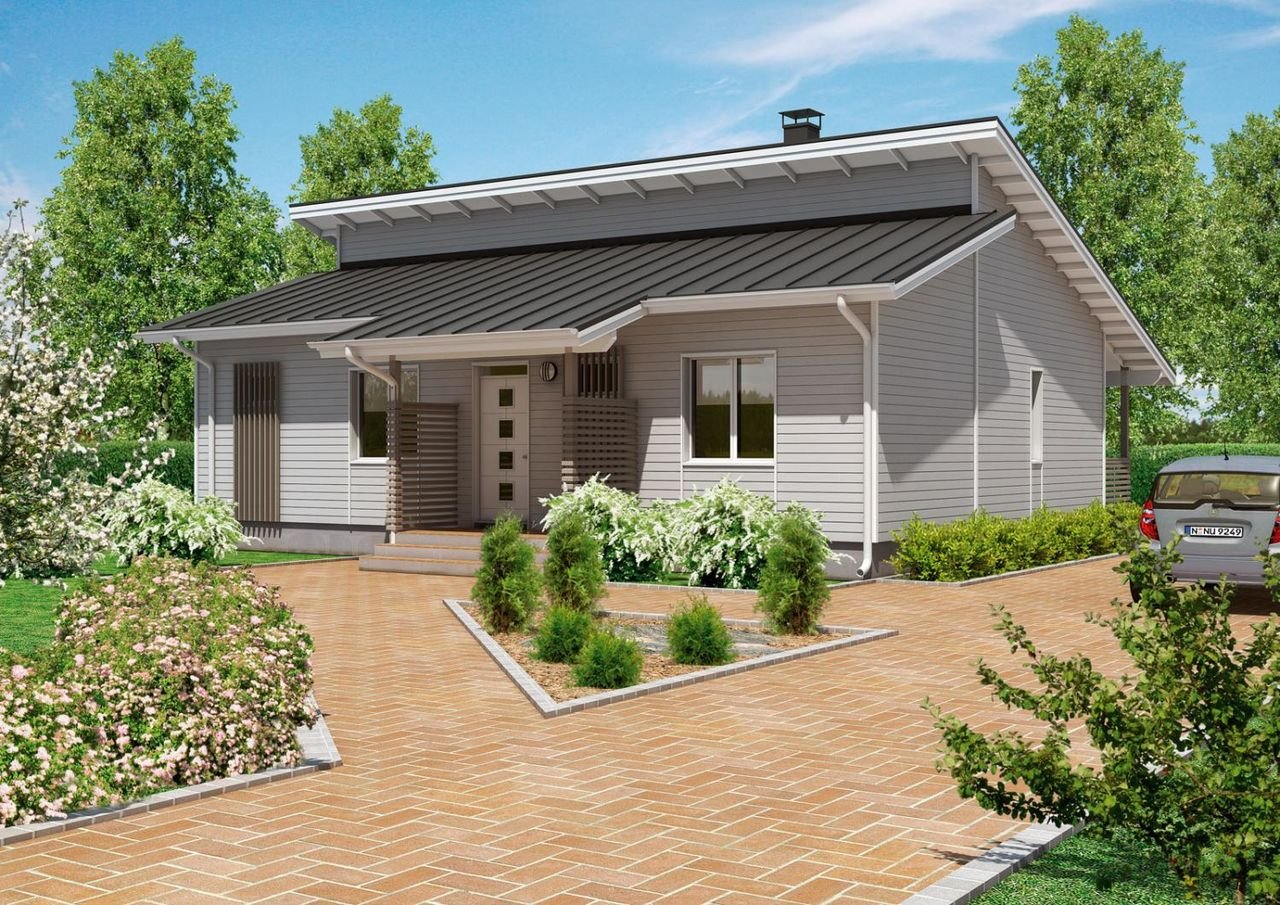 Одноэтажный дом 100 кв с разноуровневой крышей
