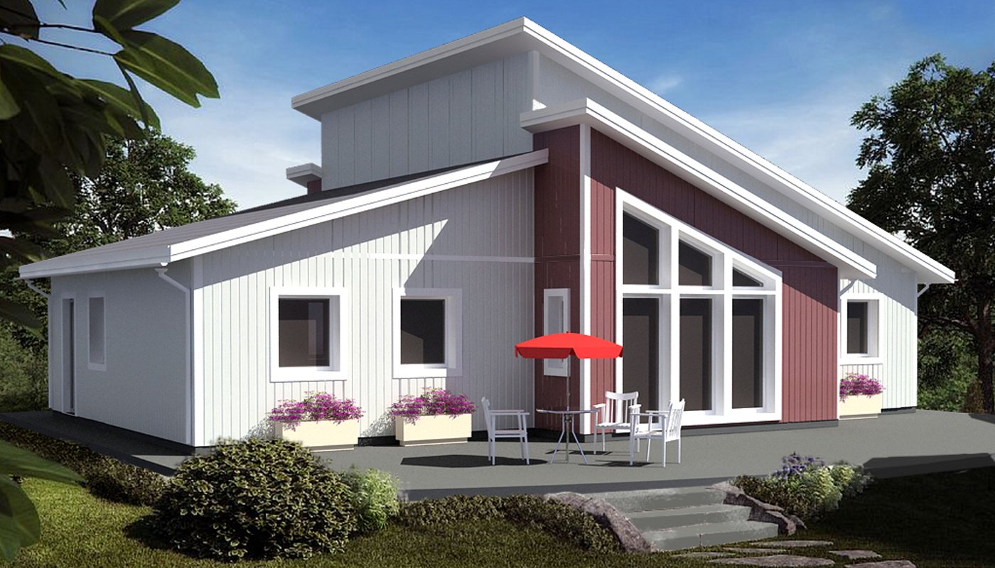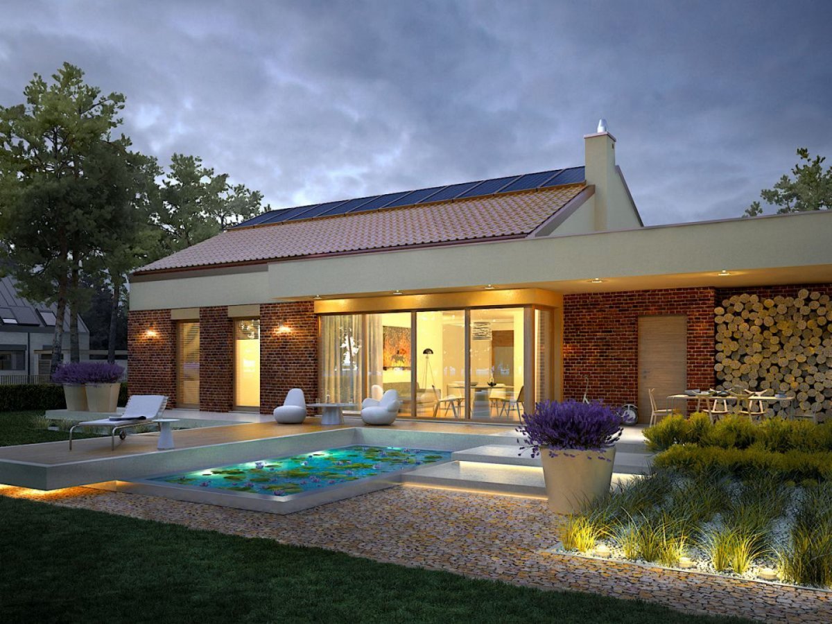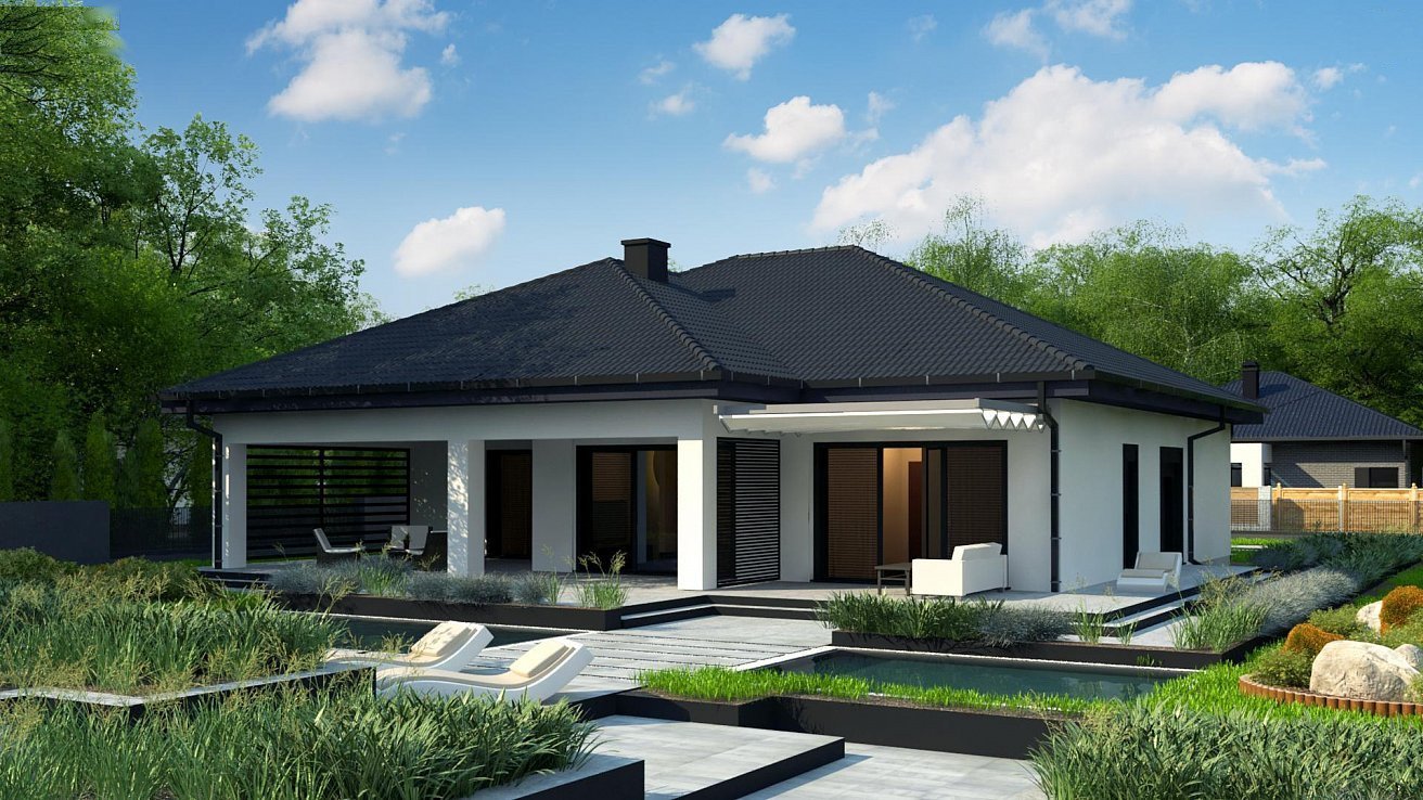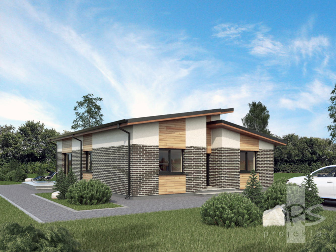 Одноэтажный дом 100 кв с разноуровневой крышей