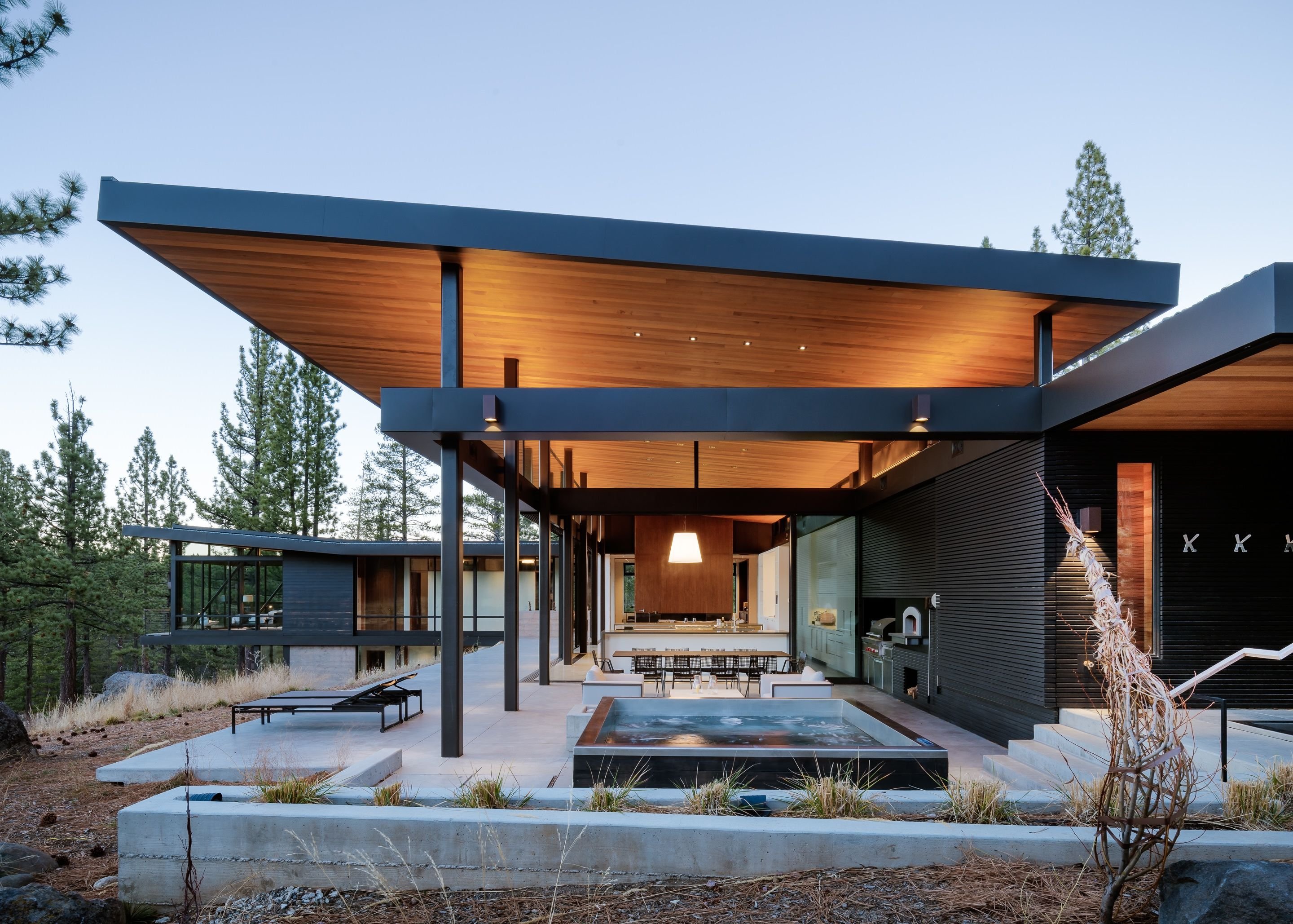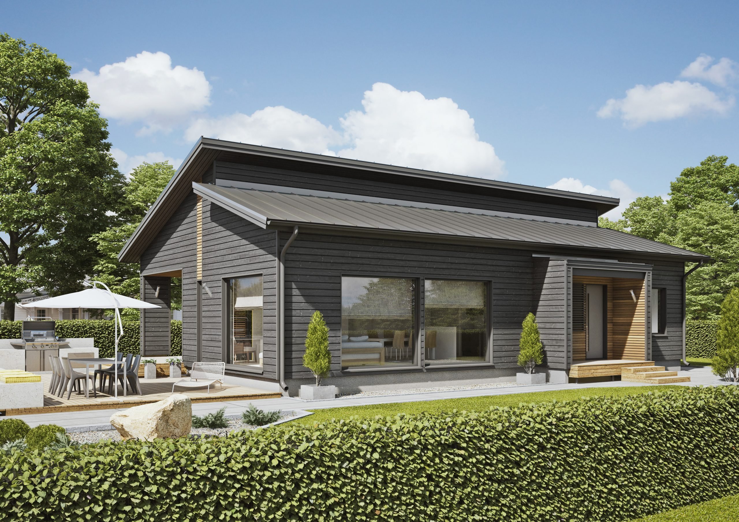 Одноэтажный дом в стиле Модерн с односкатной крышей