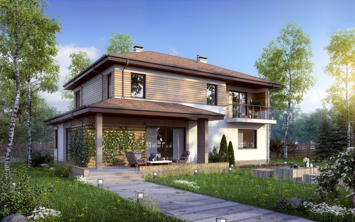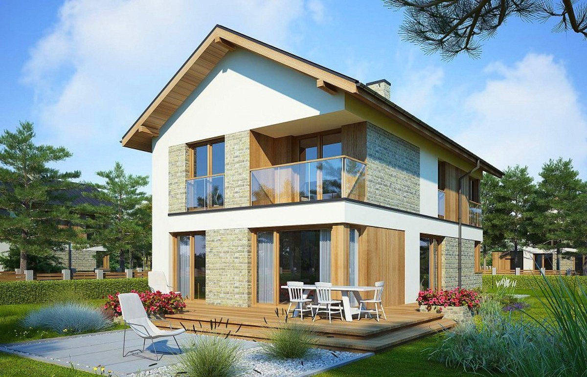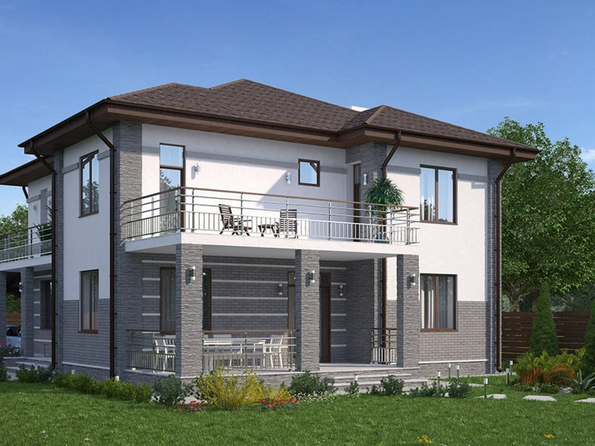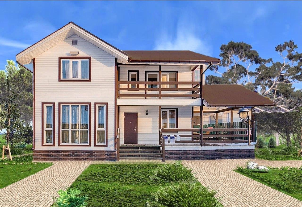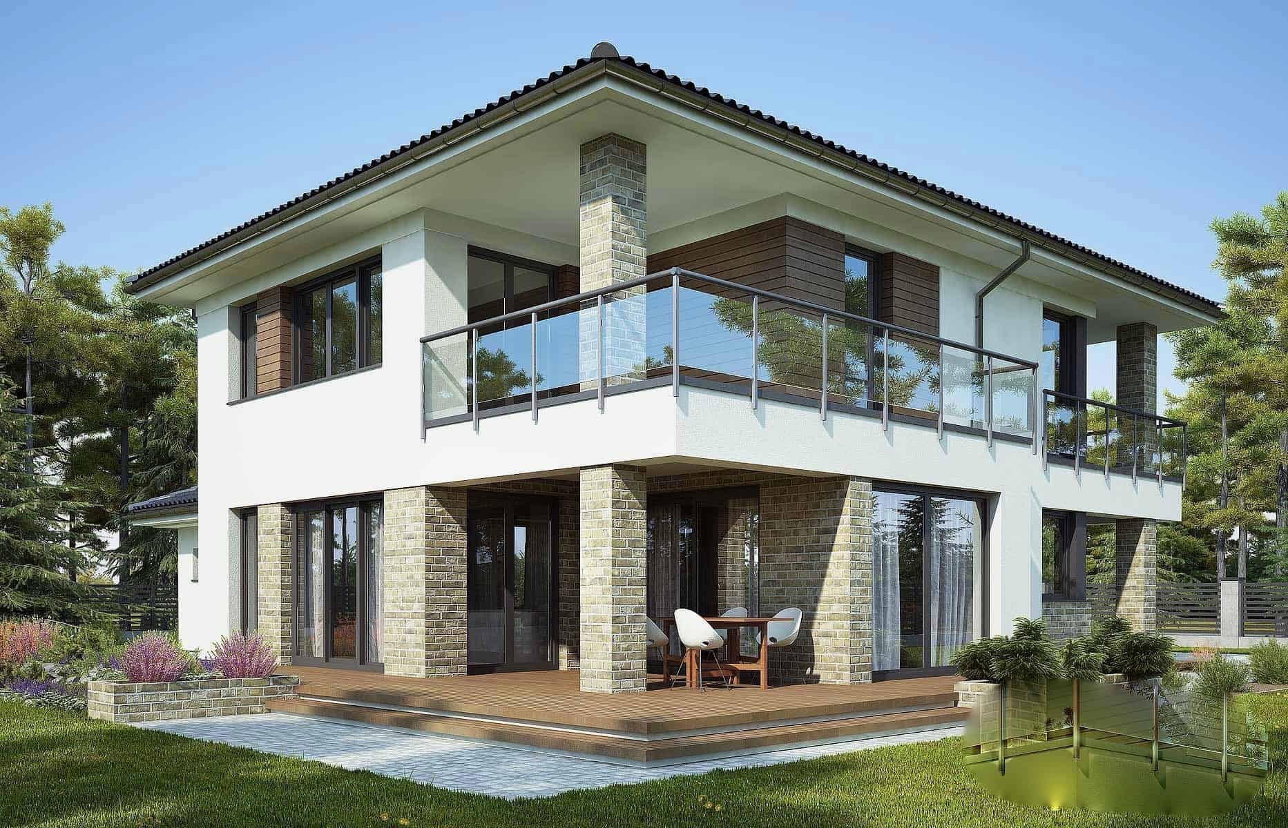 Проекты двухэтажных домов с террасой и балконом