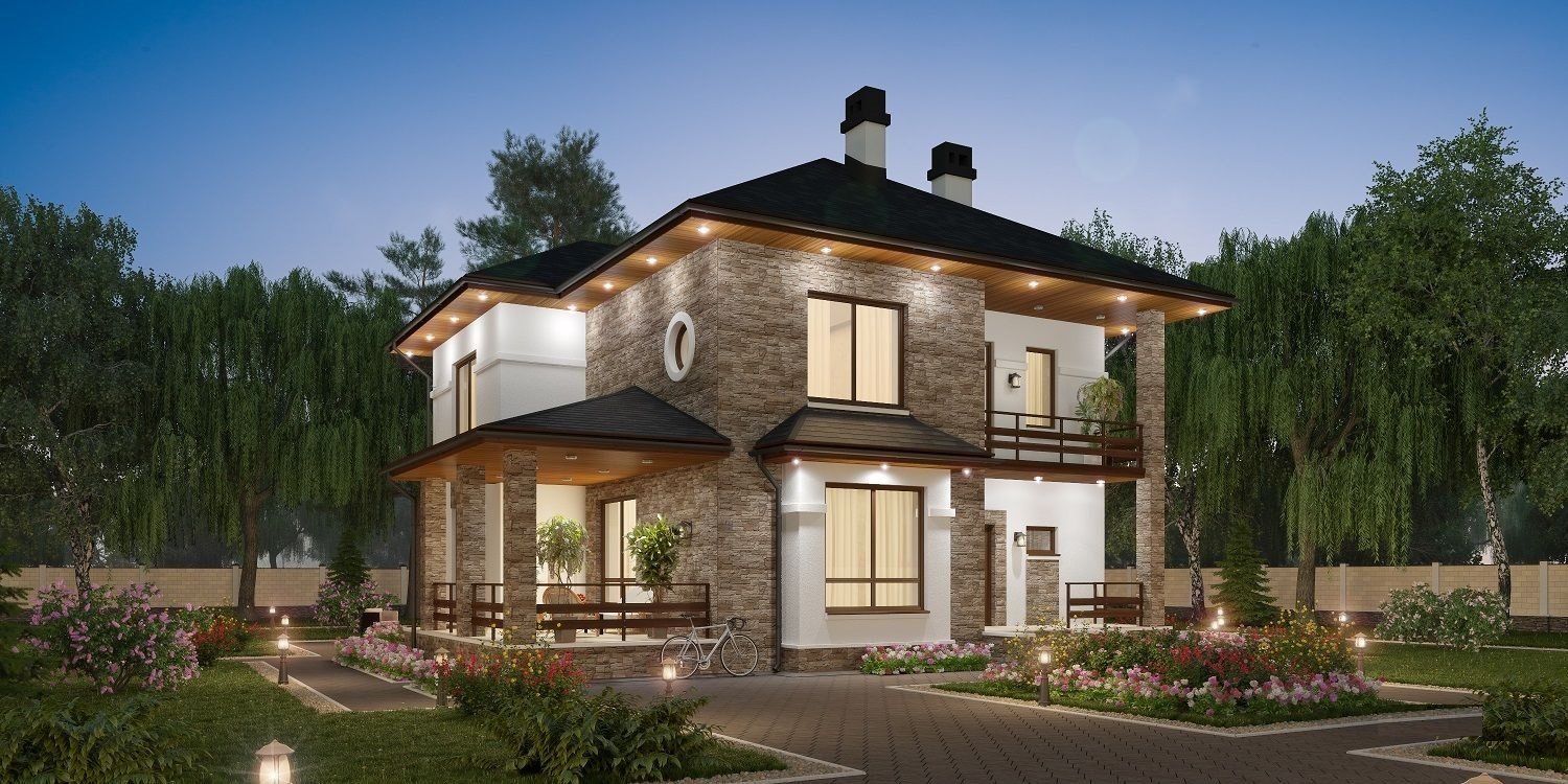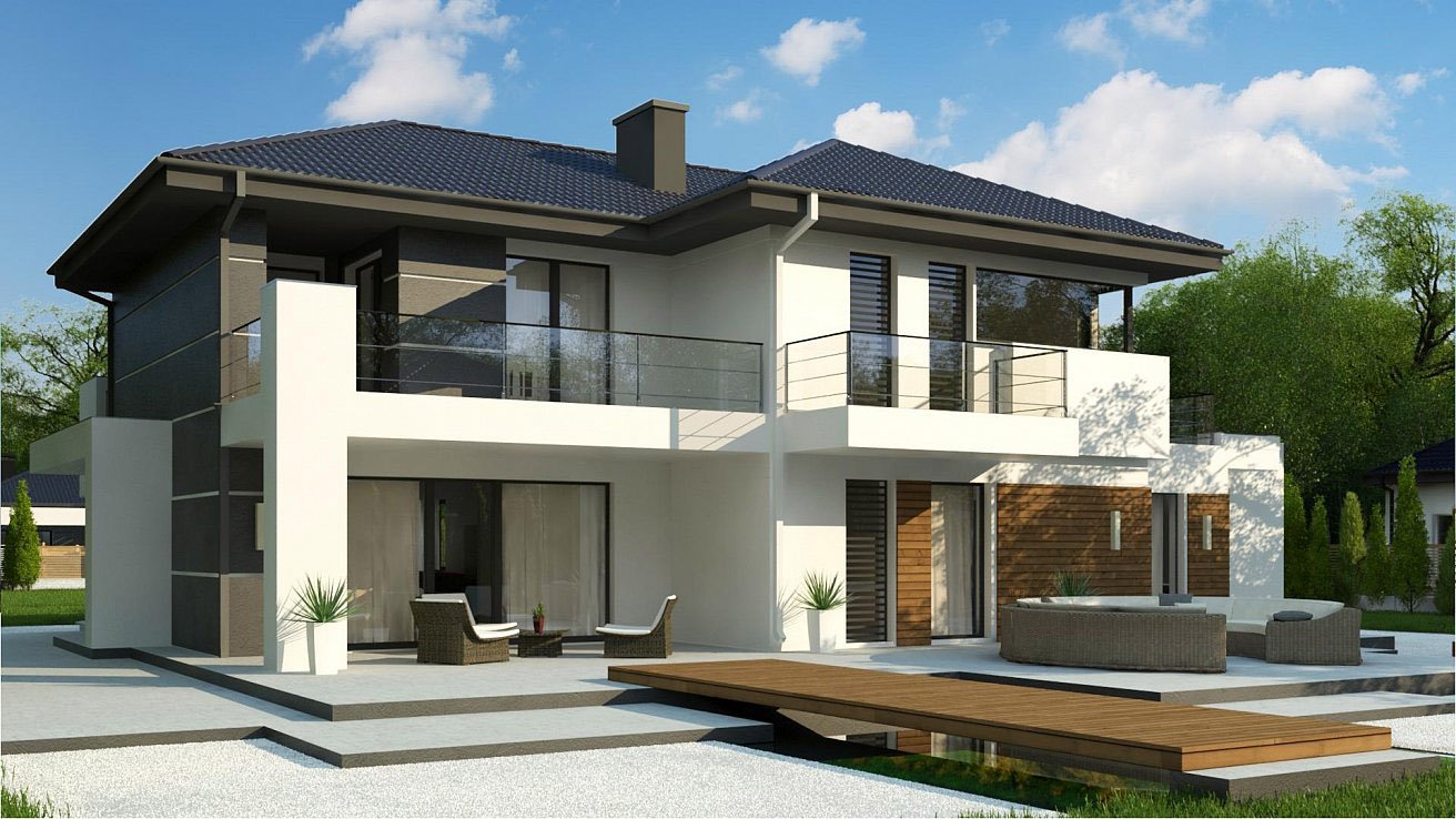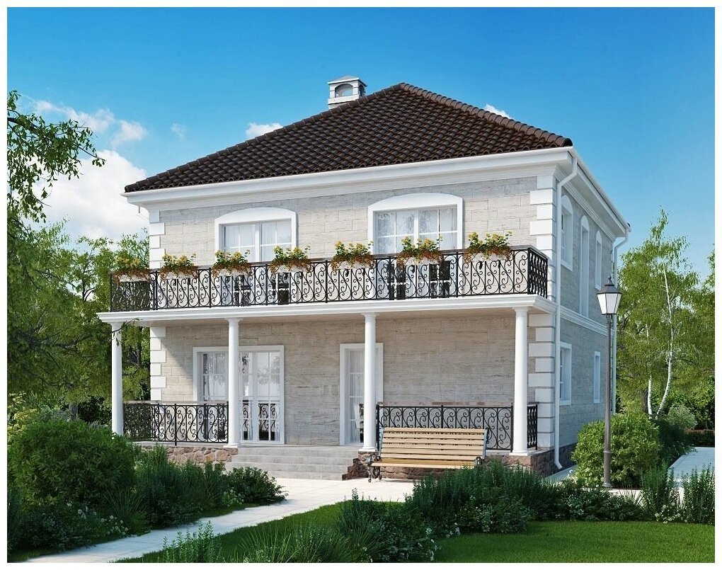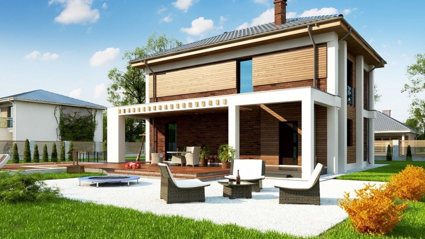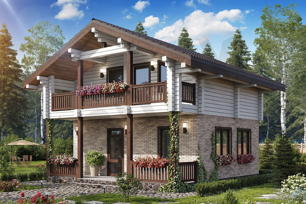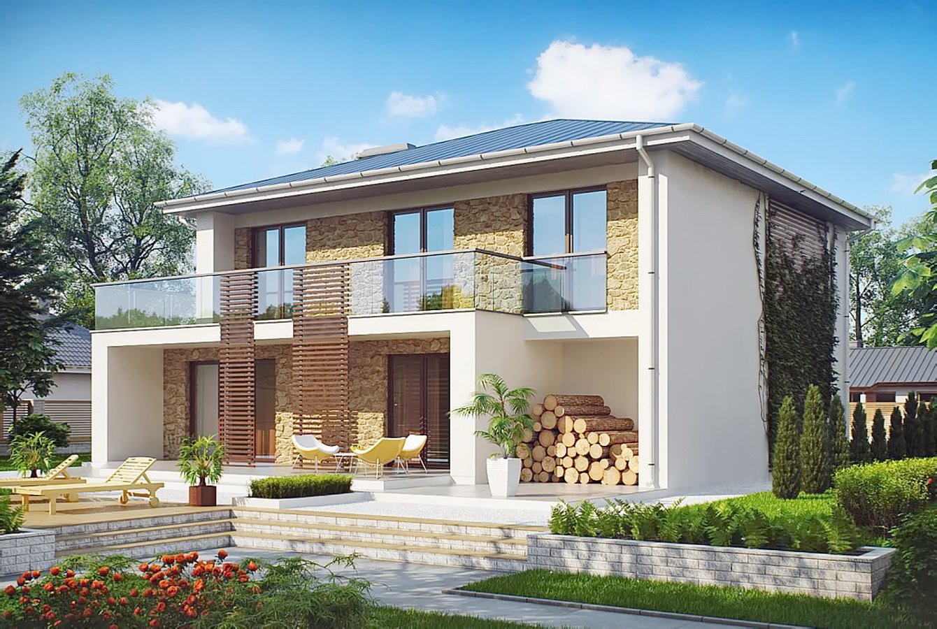 Проекты двухэтажных домов с террасой и балконом