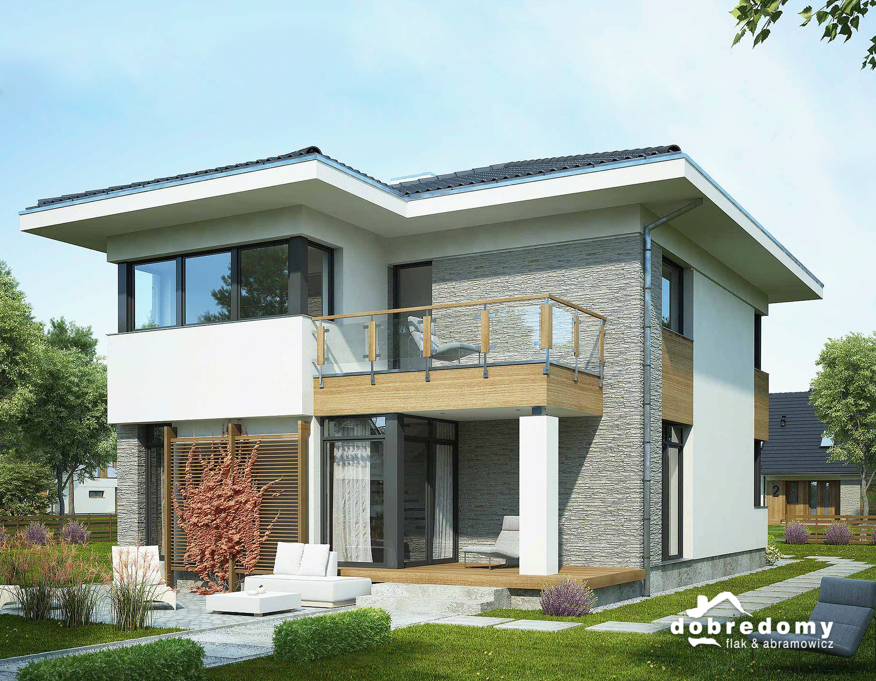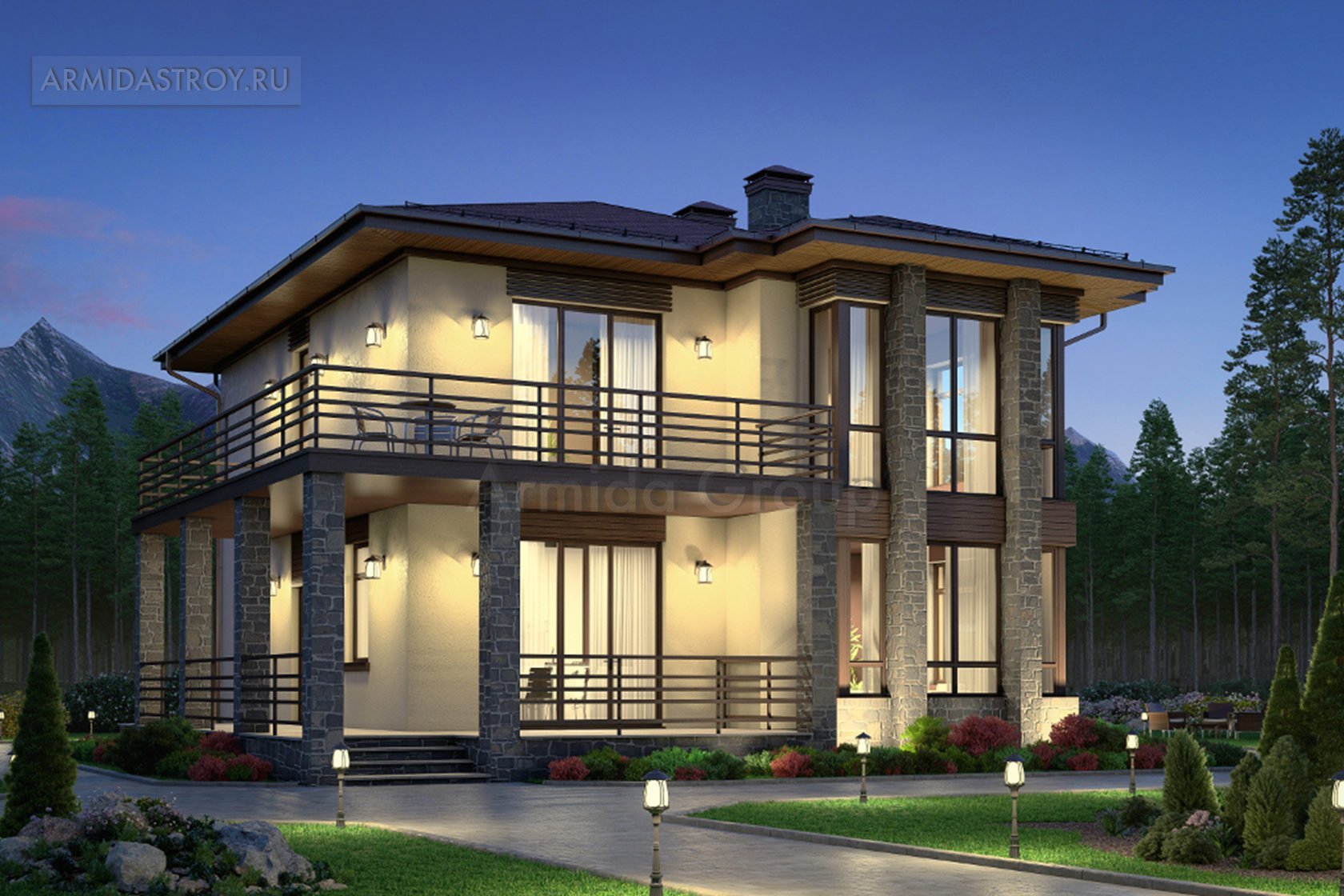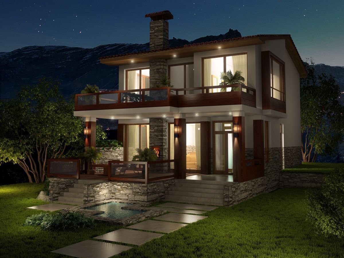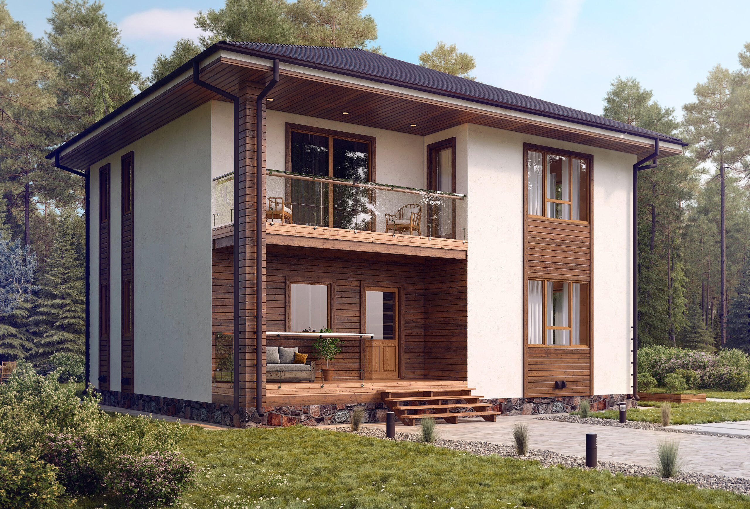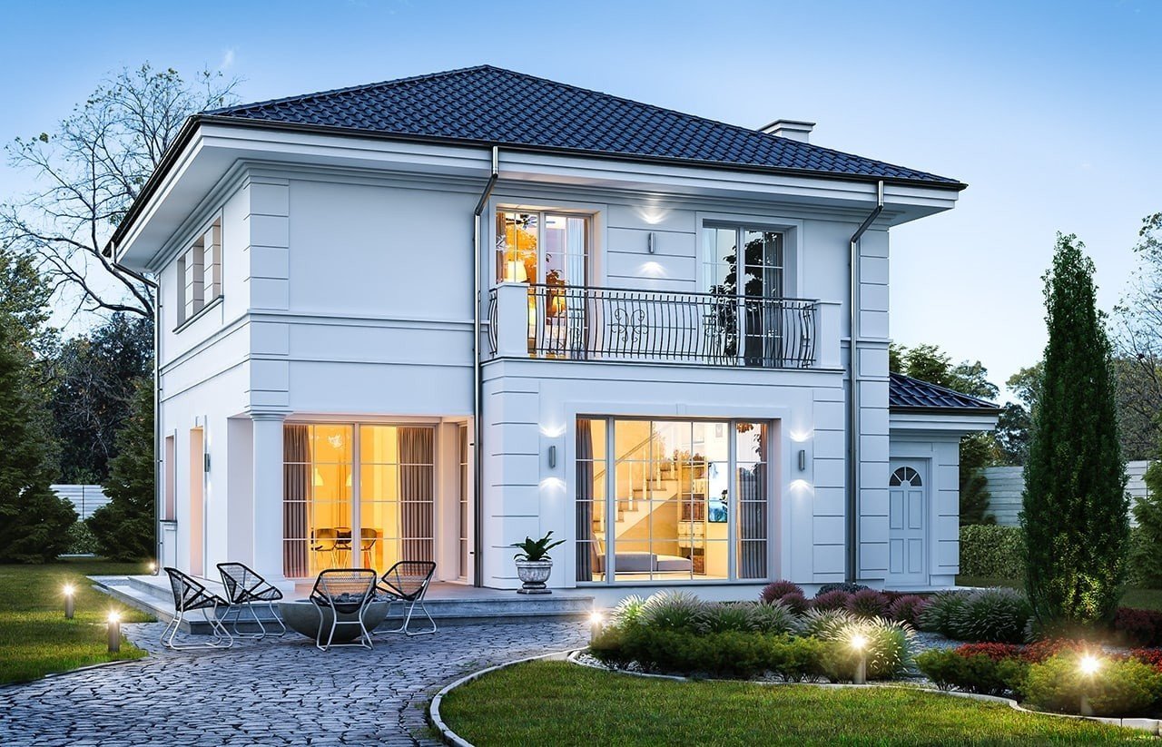 Проекты двухэтажных домов с террасой и балконом