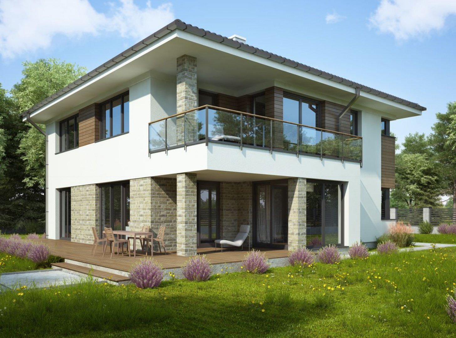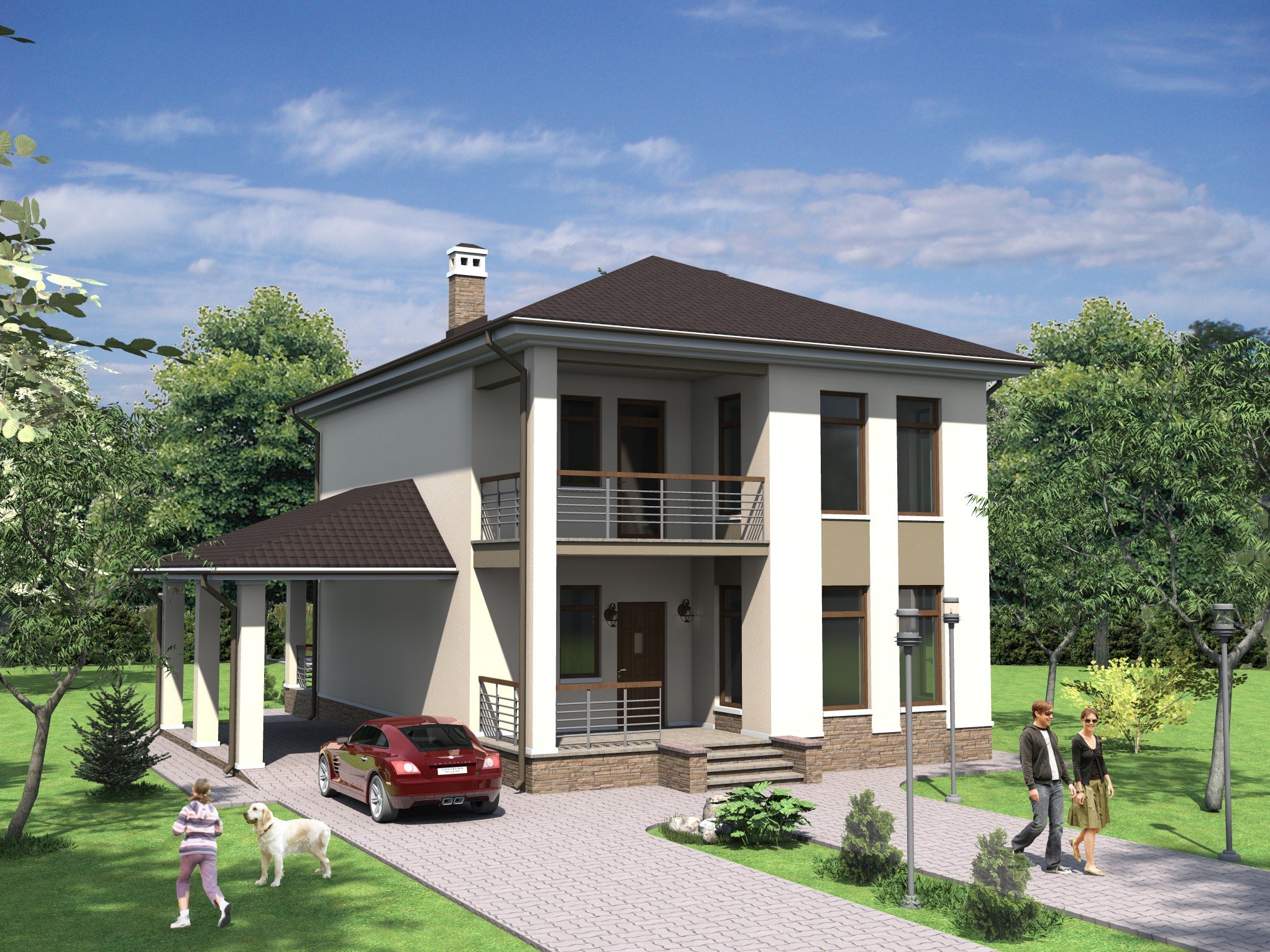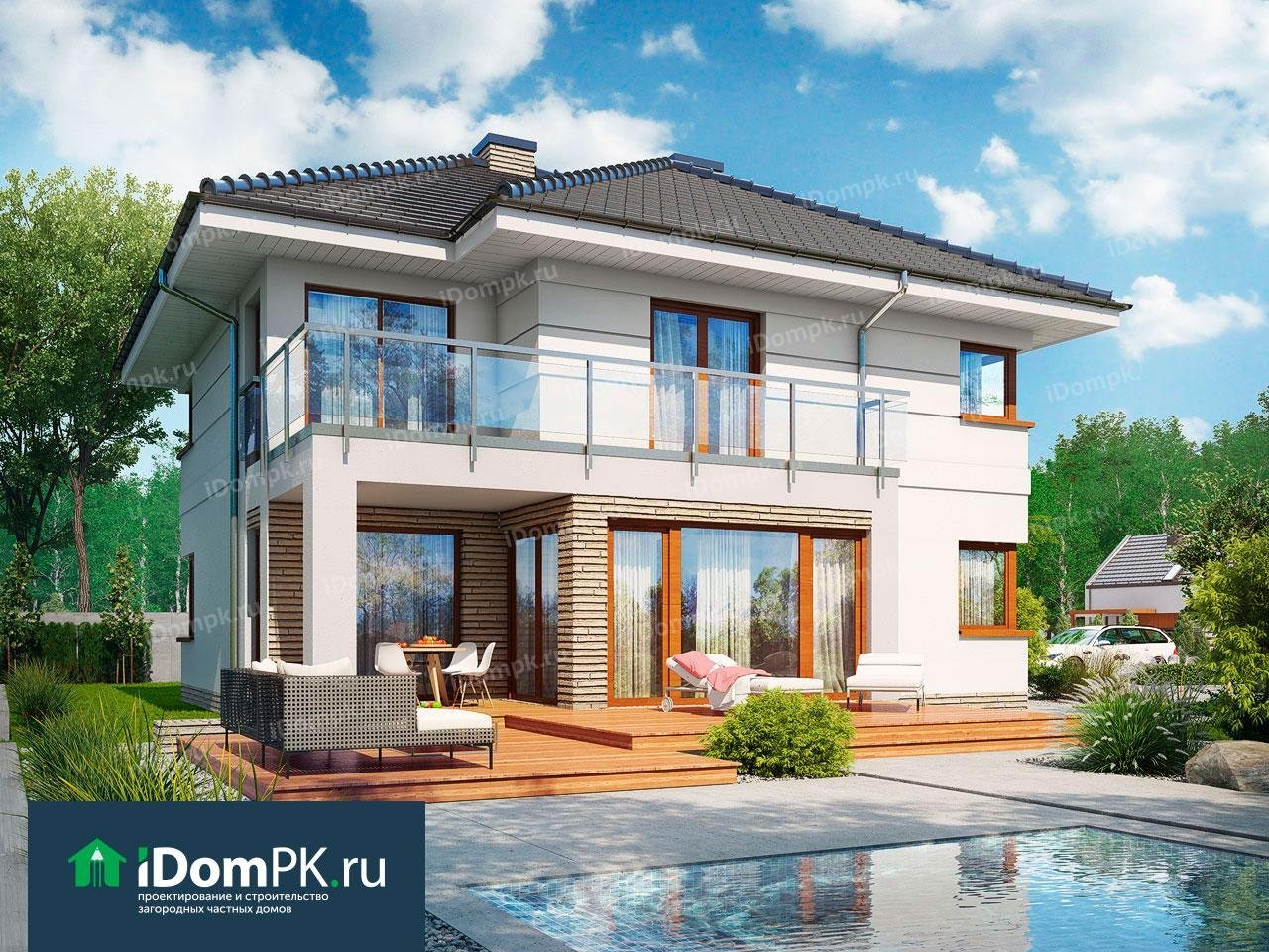 Двухэтажный дом с террасой и балконом