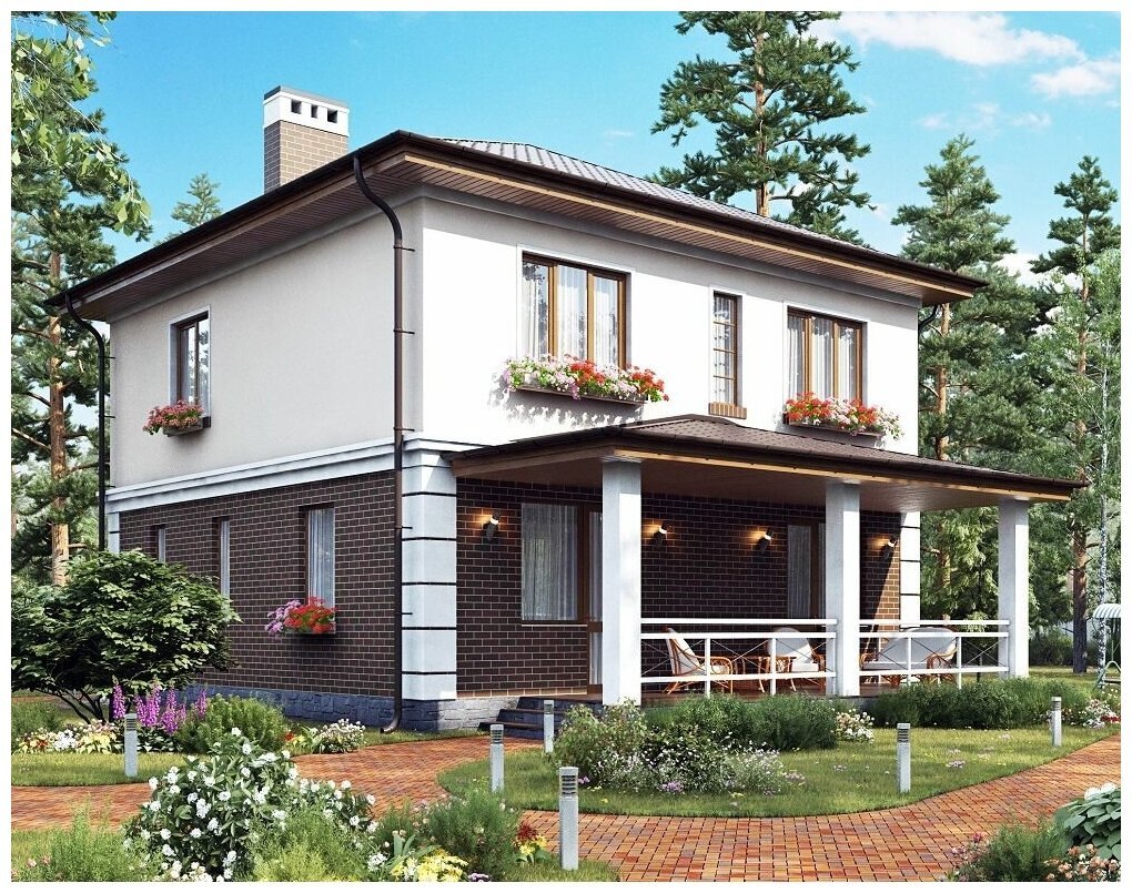Двухэтажный коттедж с террасой