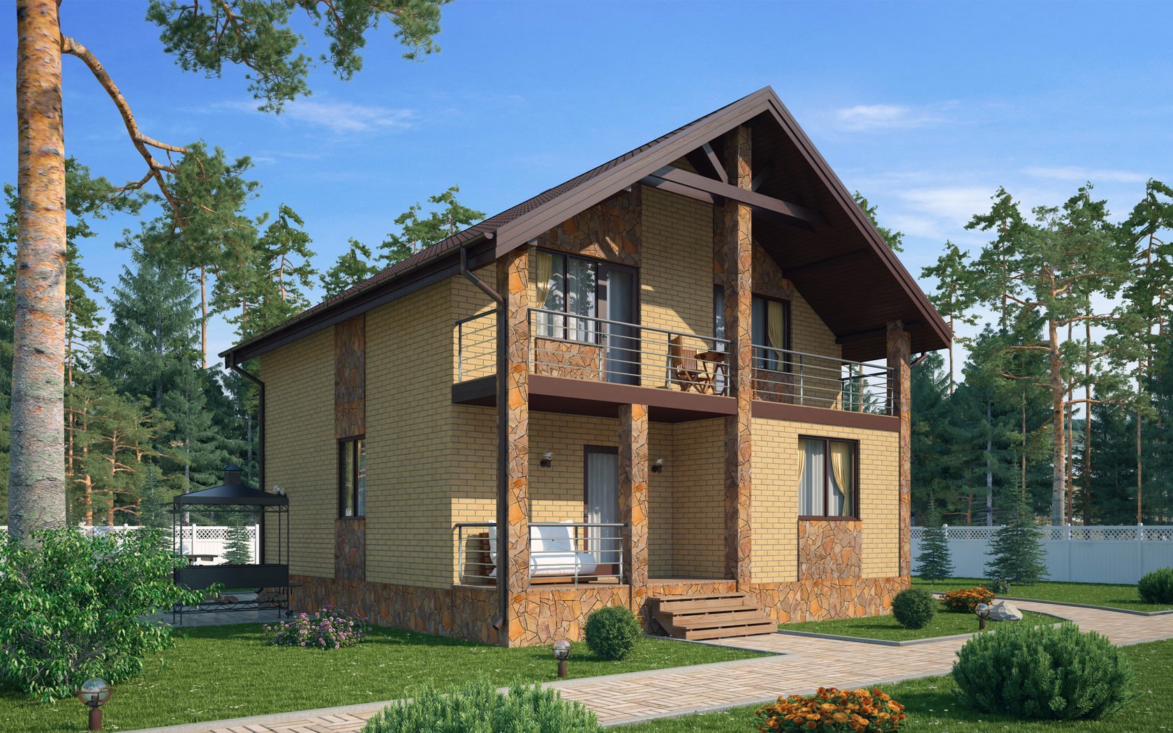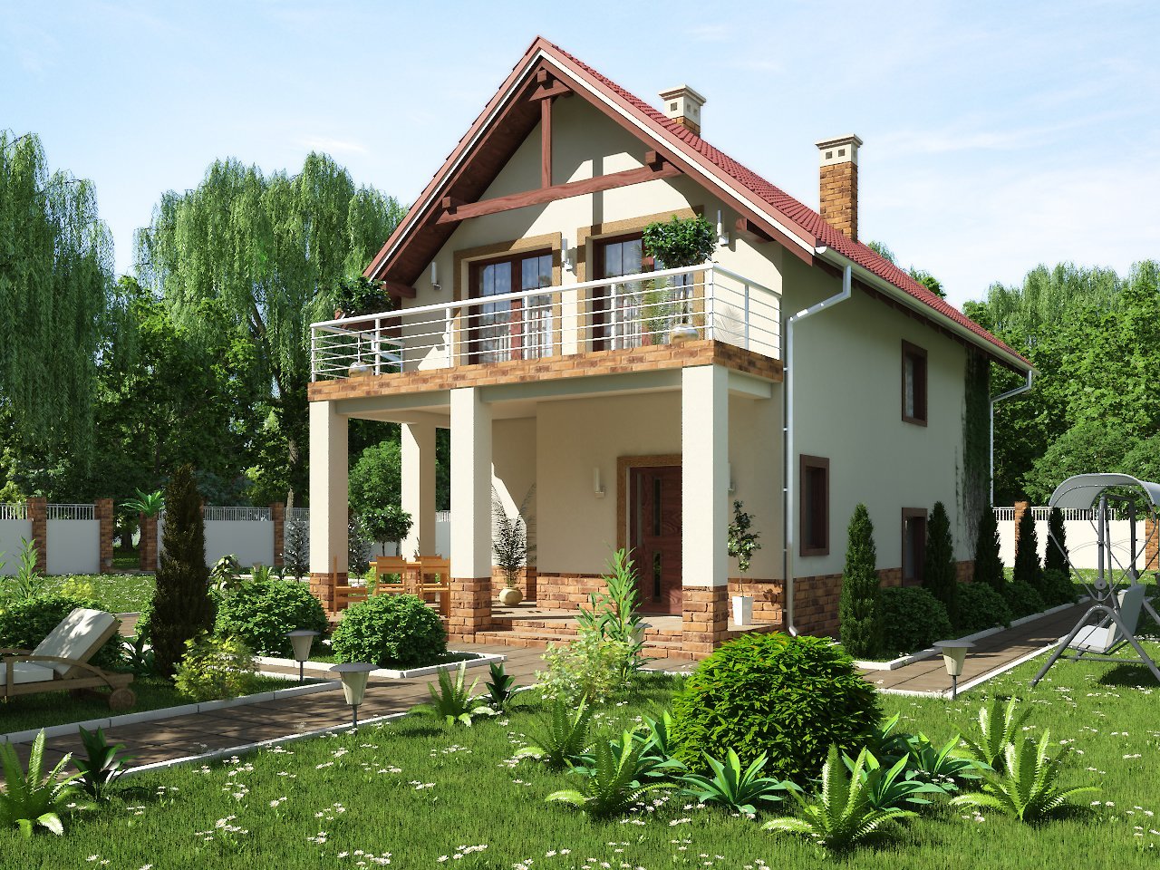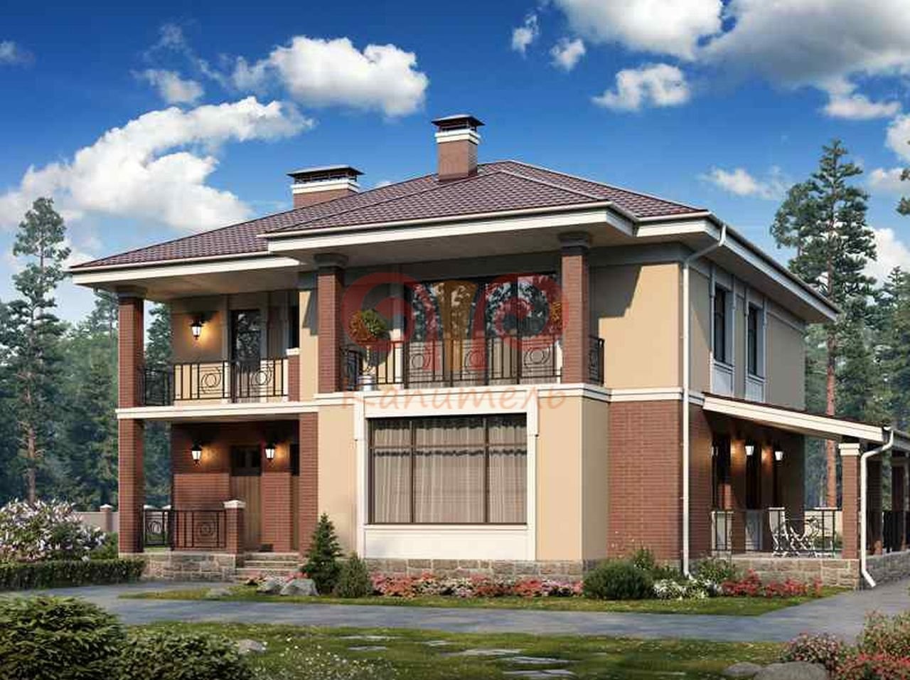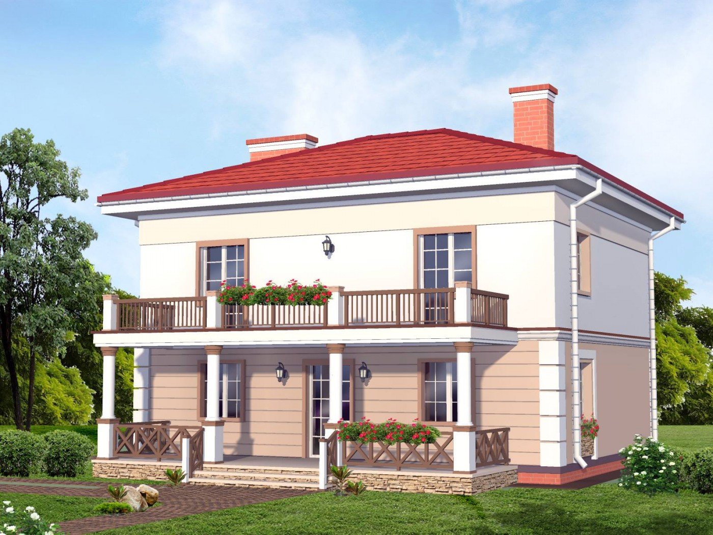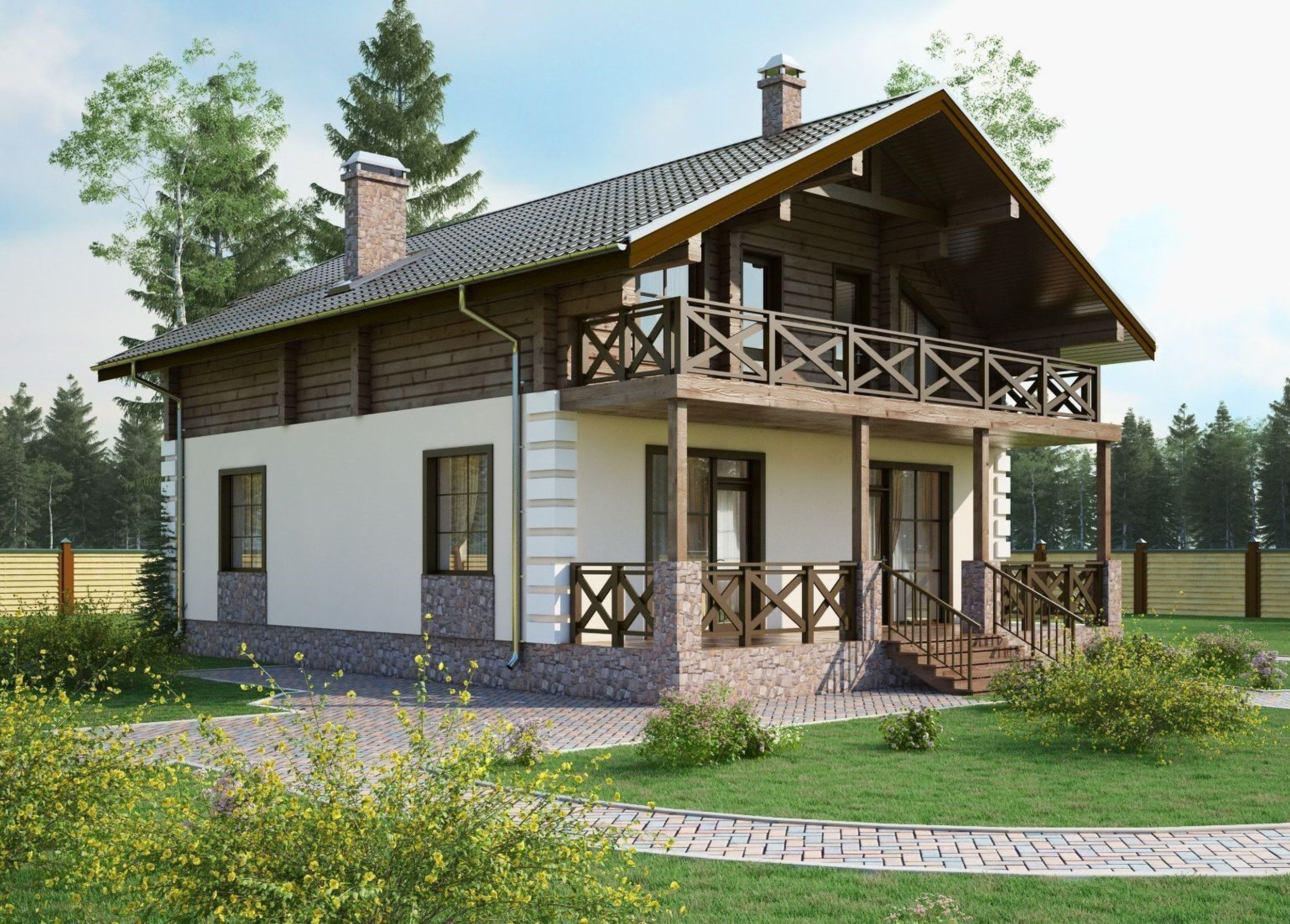 Двухэтажный коттедж с балконом
