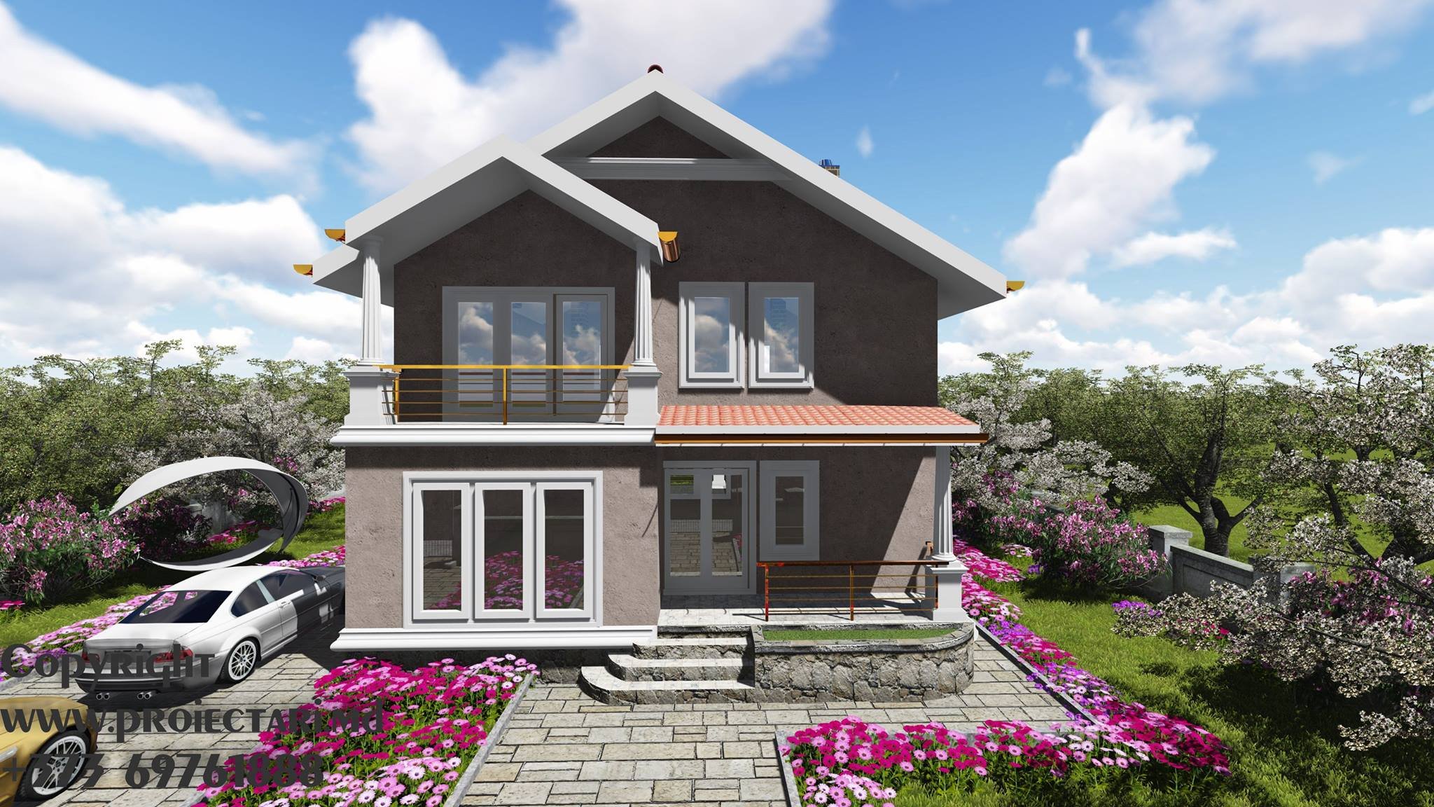 Дом с балконом и террасой