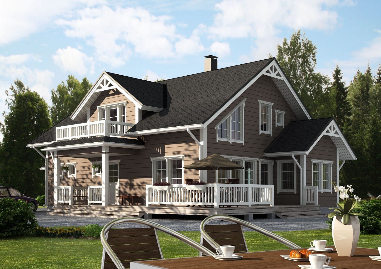 Дом с балконом и угловой террасой