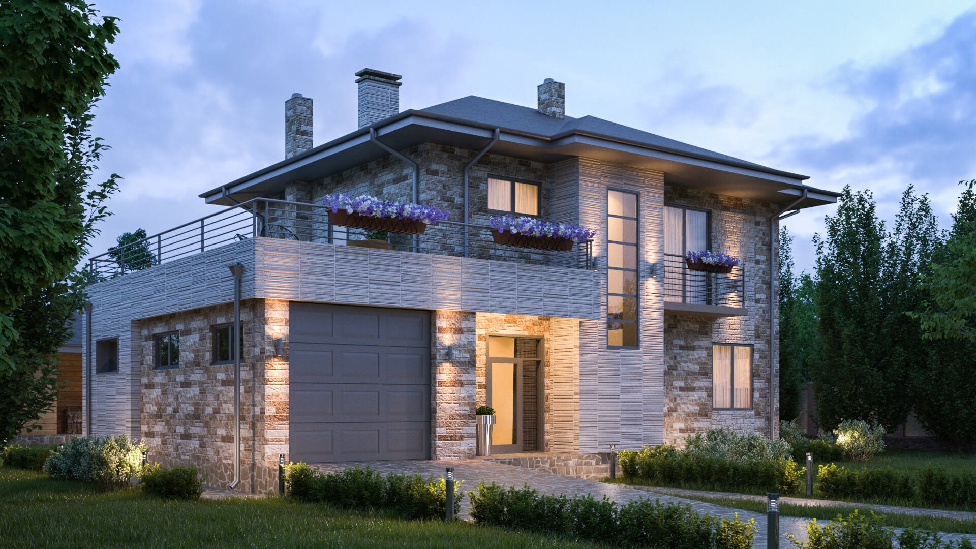 Двухэтажный дом с террасой над гаражом