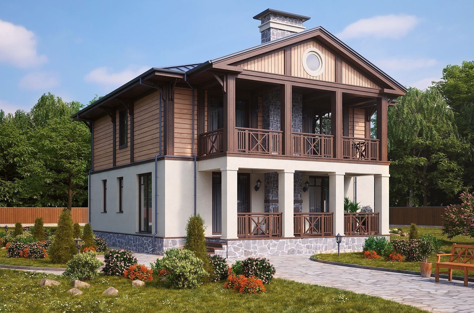 Комбинированное Шале из клееного бруса