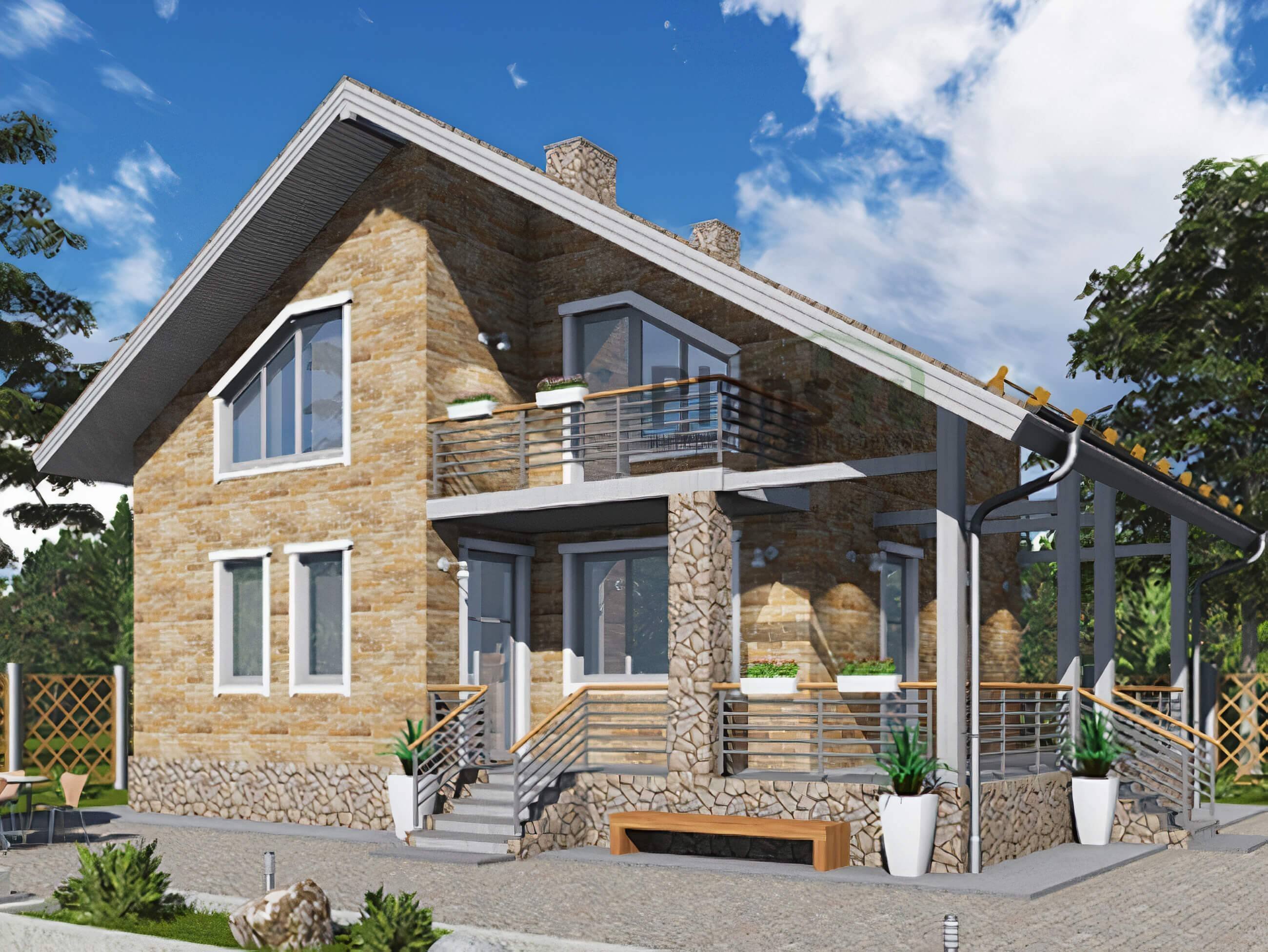 Дом с мансардой и балконом 120кв