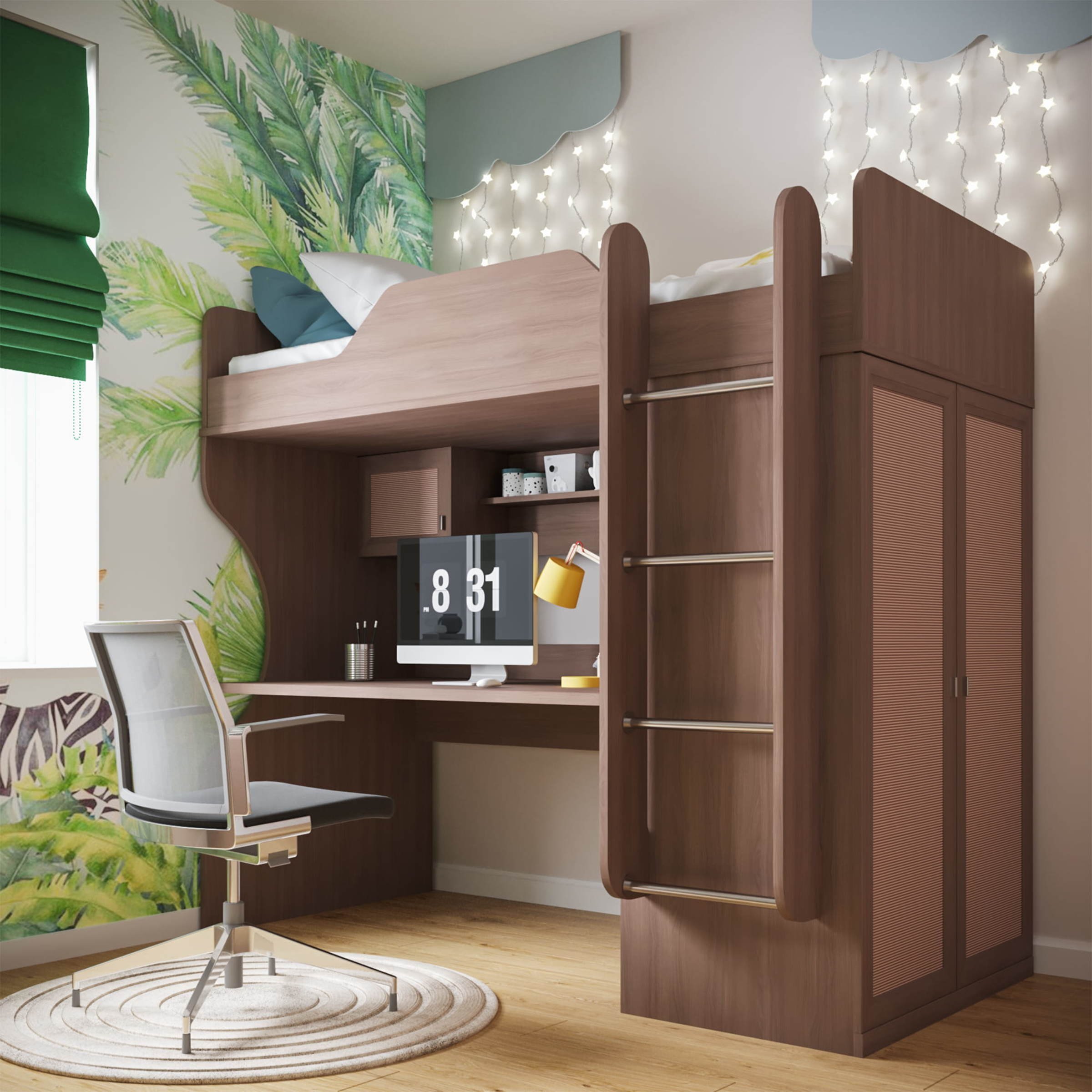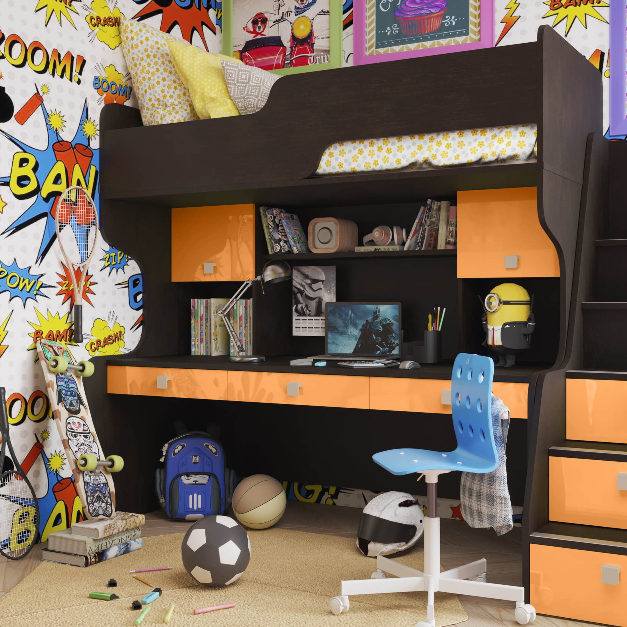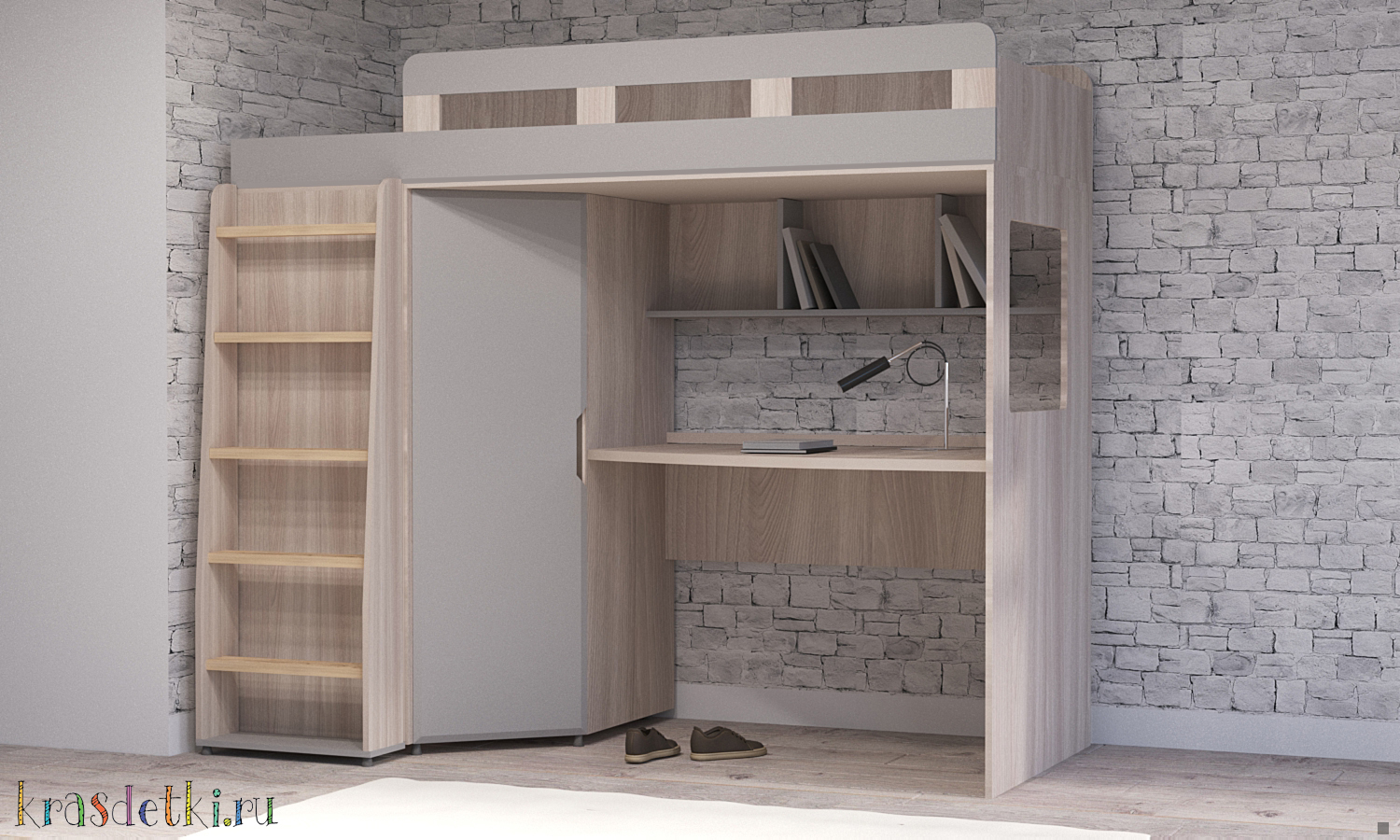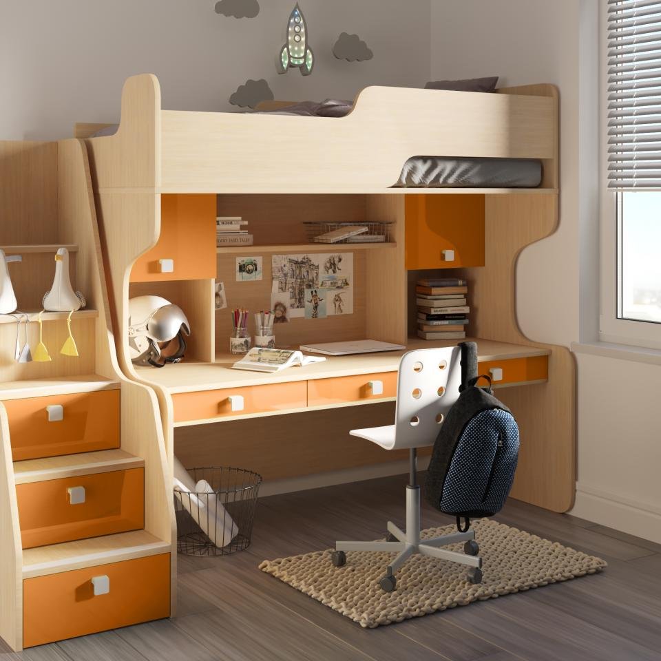 Кровать-чердак с рабочей зоной Мираж 5