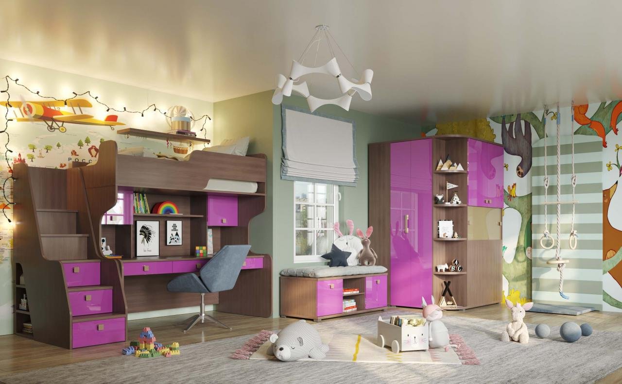 Лазурит детская розовая мебель