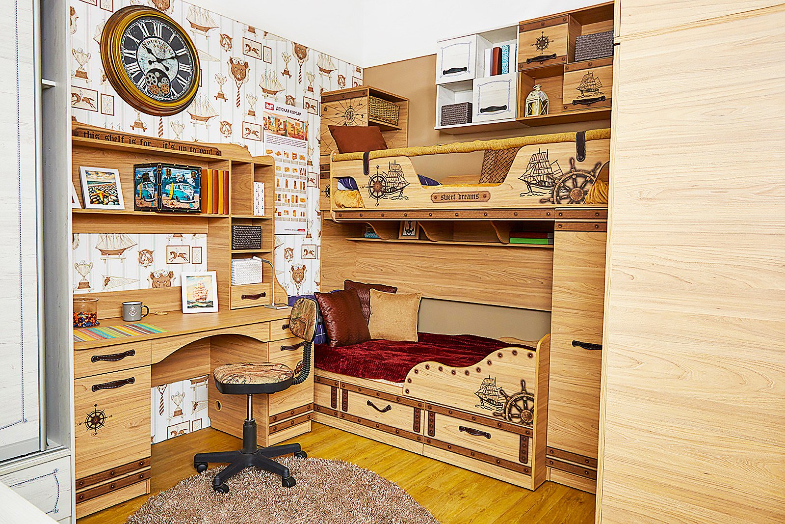 Лазурит кровать детская со шкафом и столом