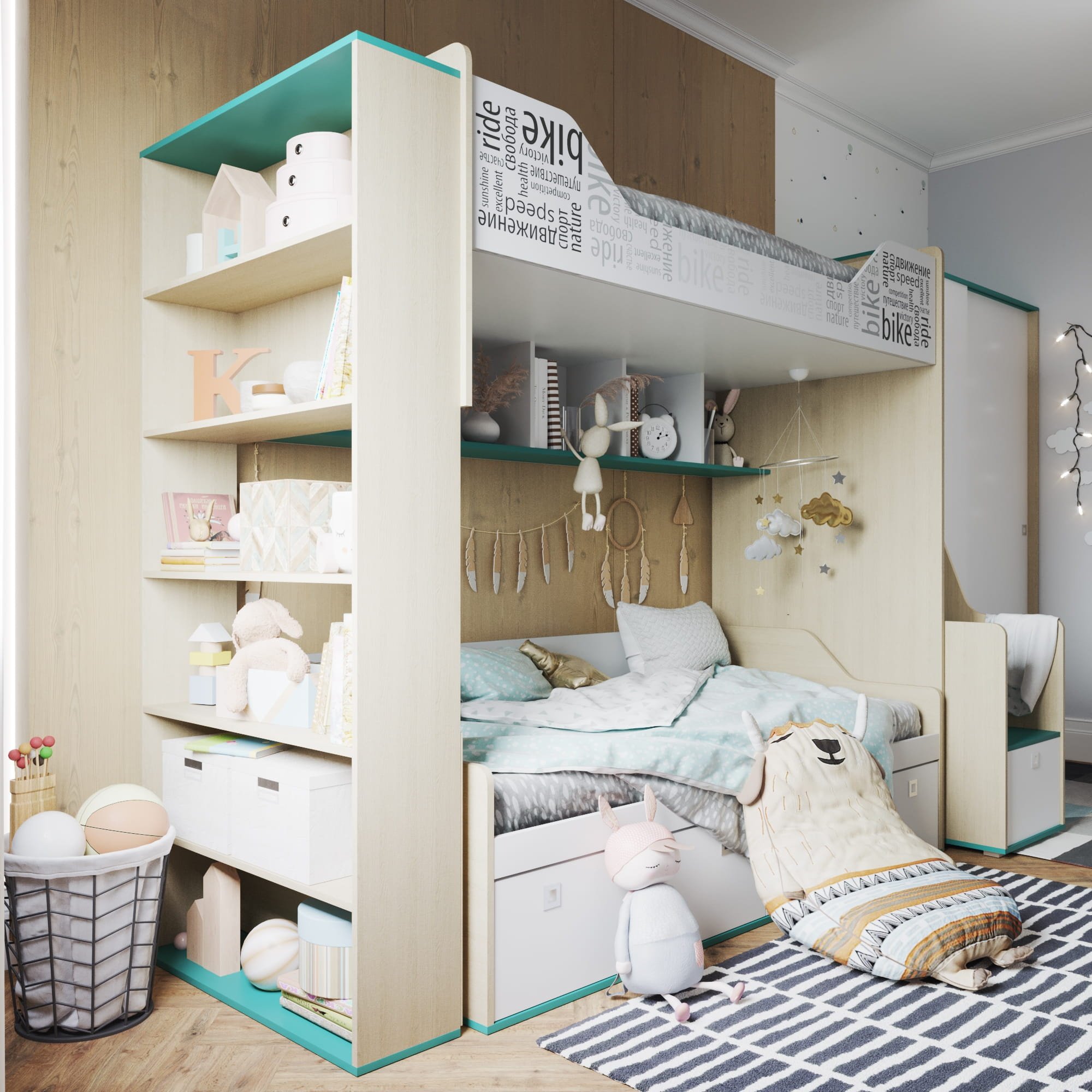 Двухуровневая кровать лазурит