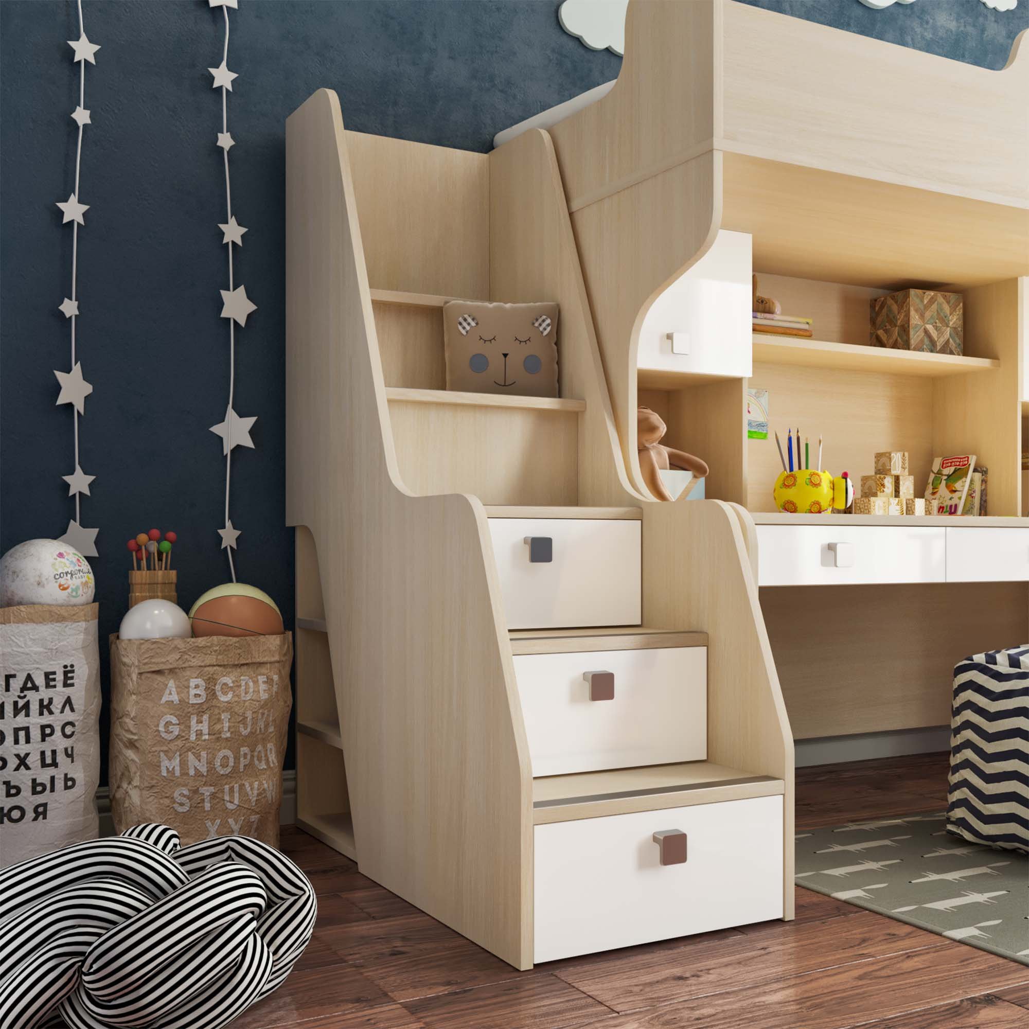 Детская кровать-чердак «Лахти 2.0» с лестницей-комодом