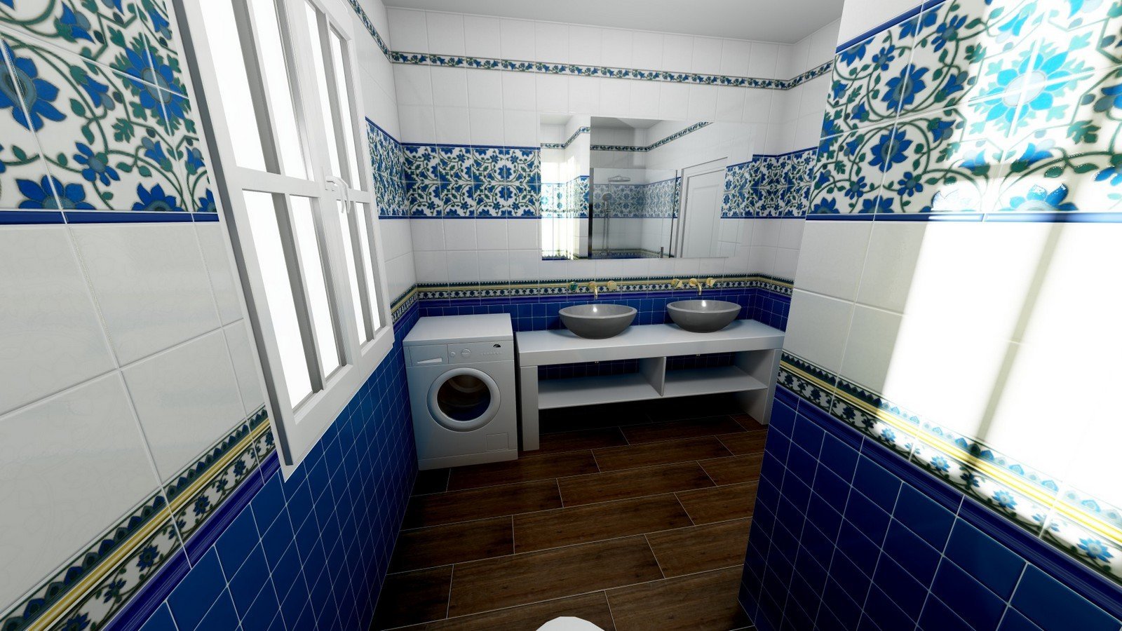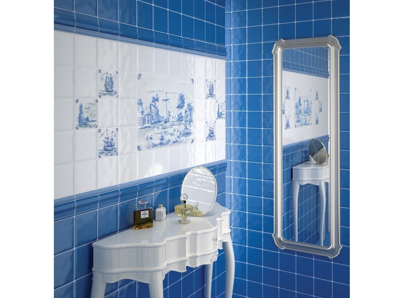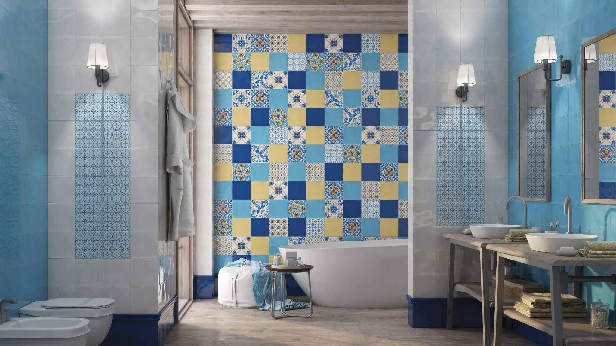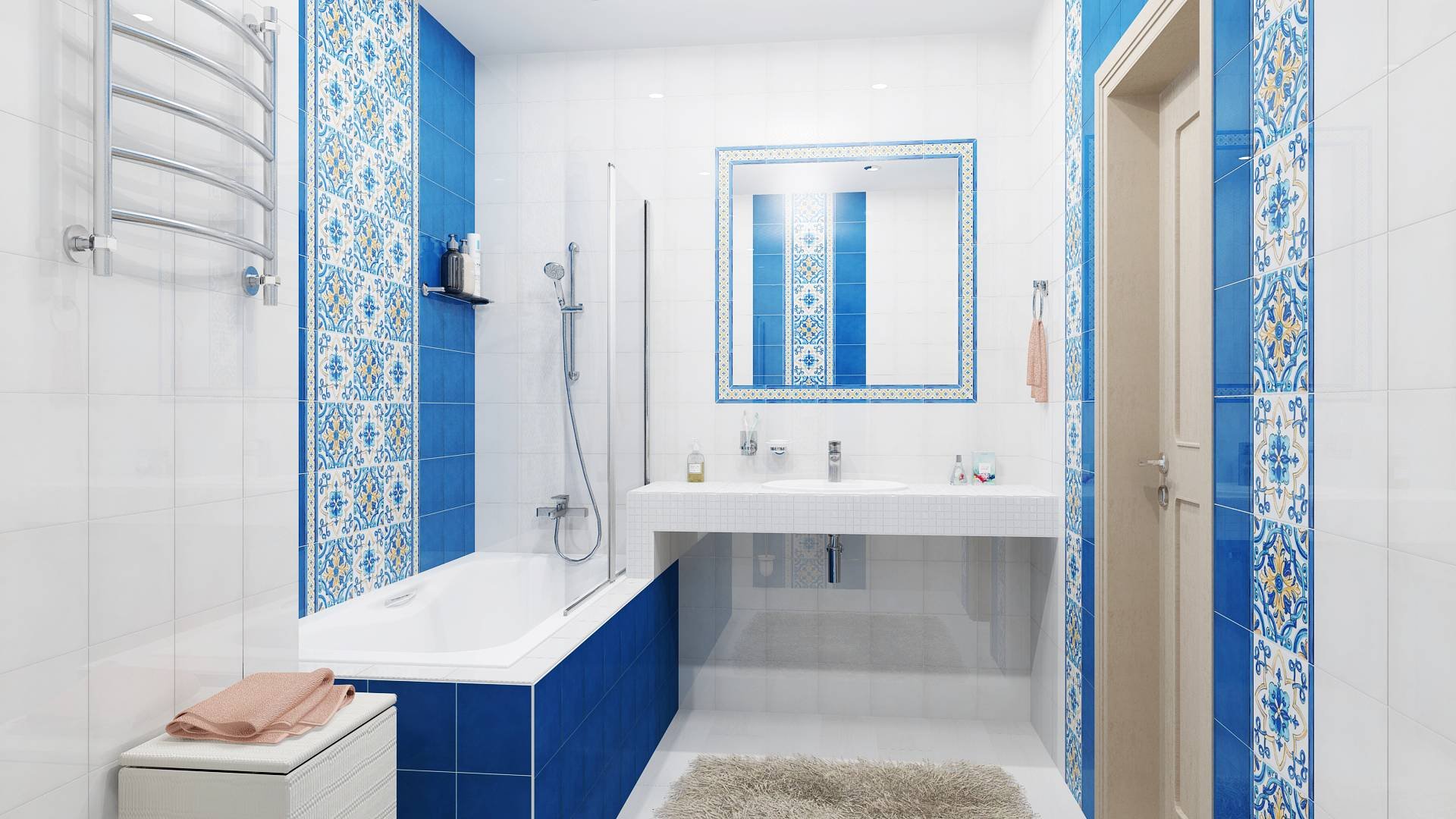 Ванна с орнаментом в голубых и синих тонах