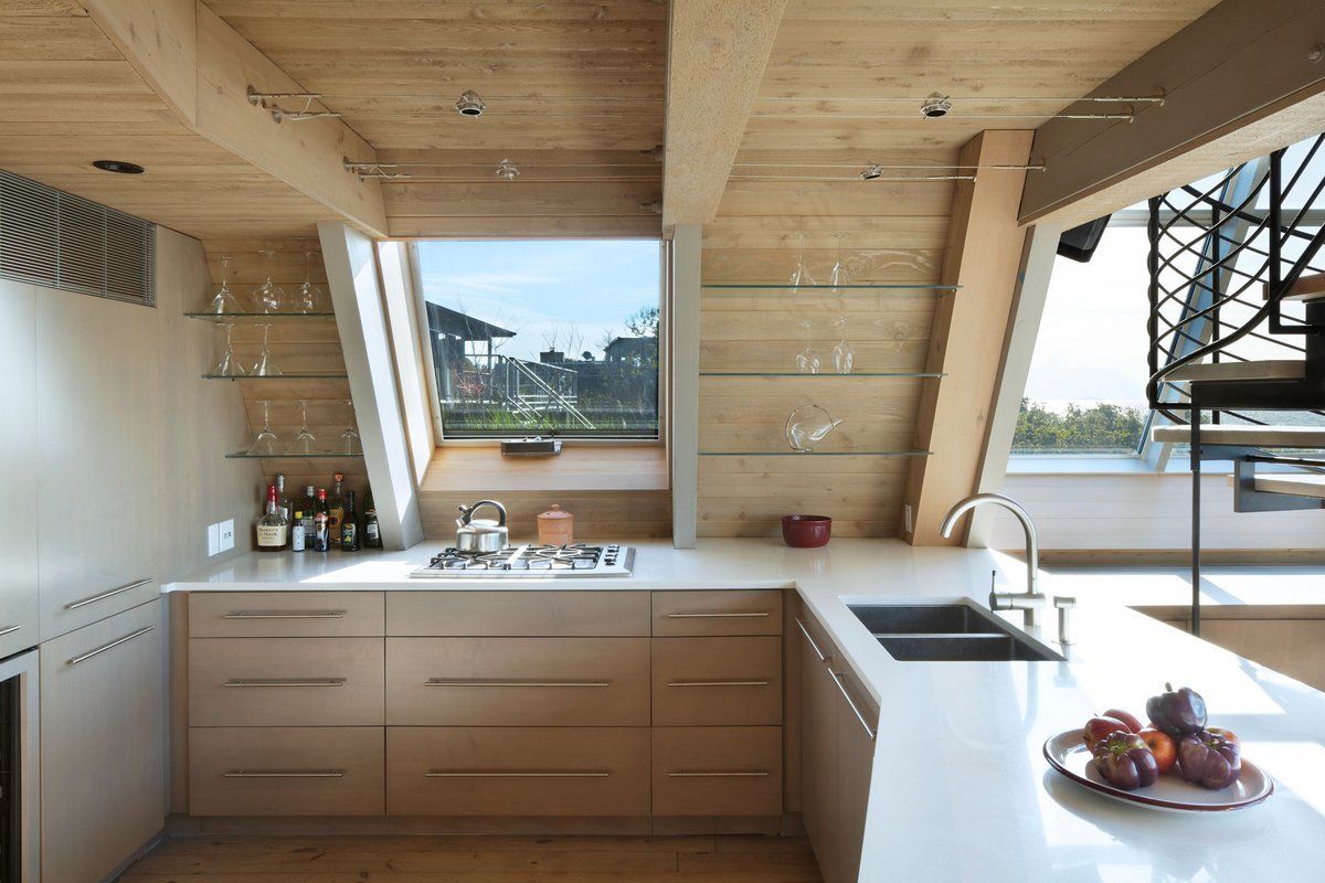 Кухня в доме с треугольной крышей