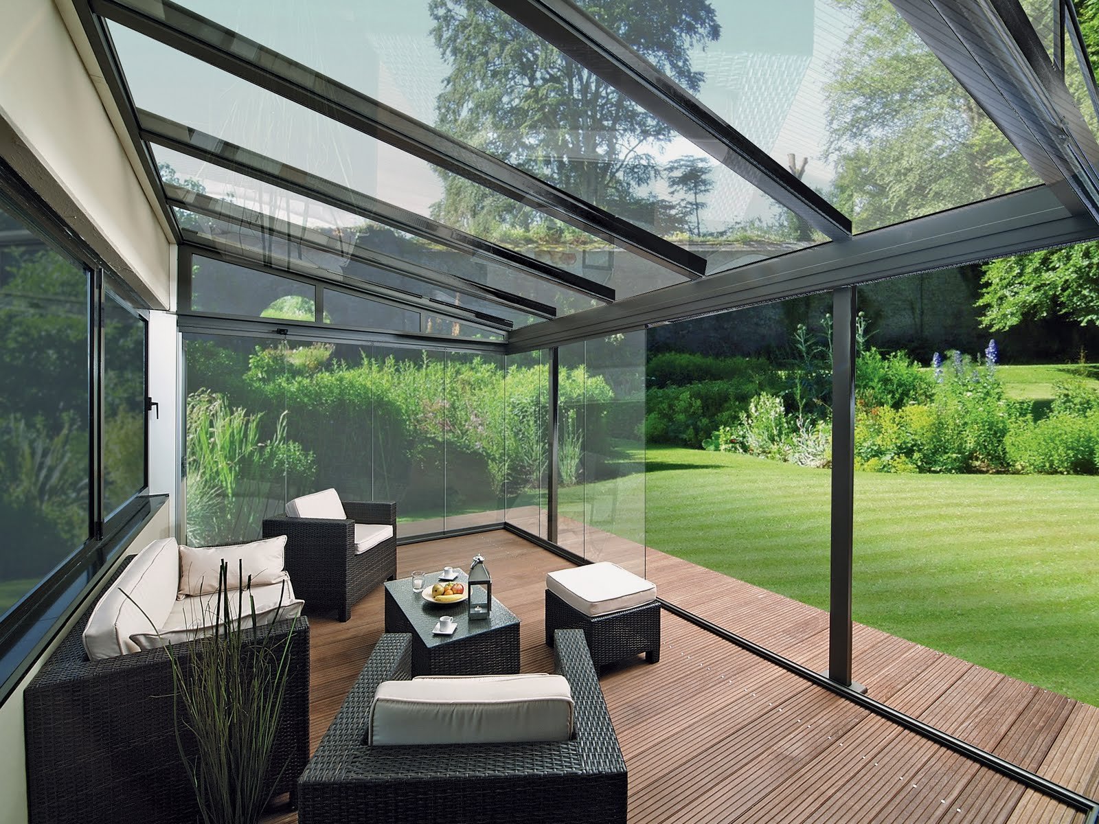 Веранда с прозрачной крышей пристроенная к дому