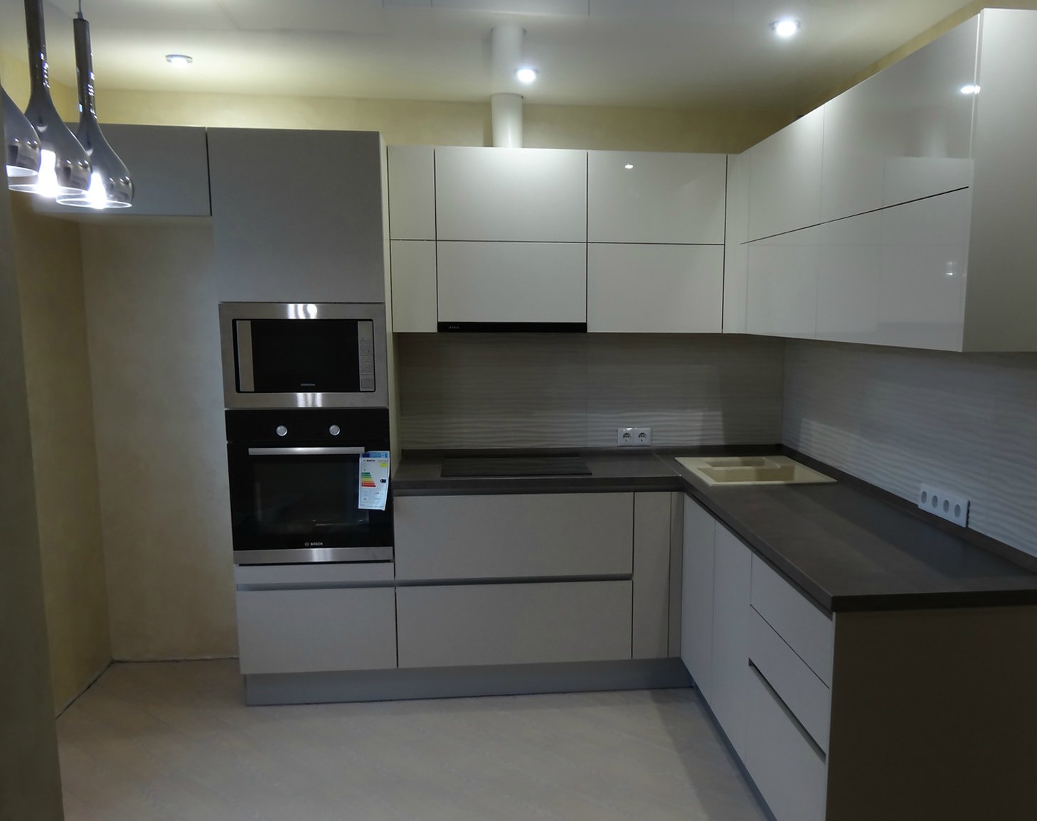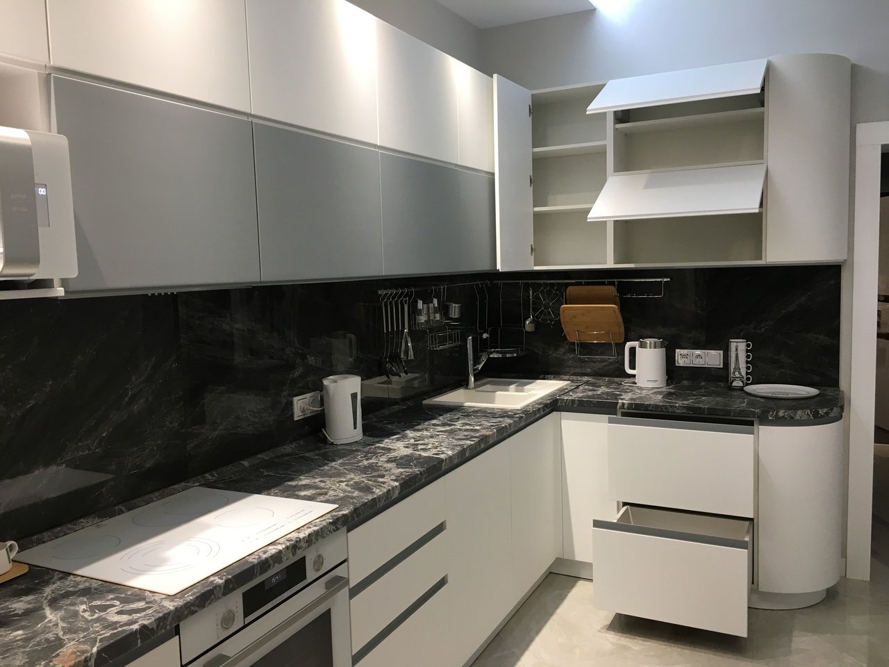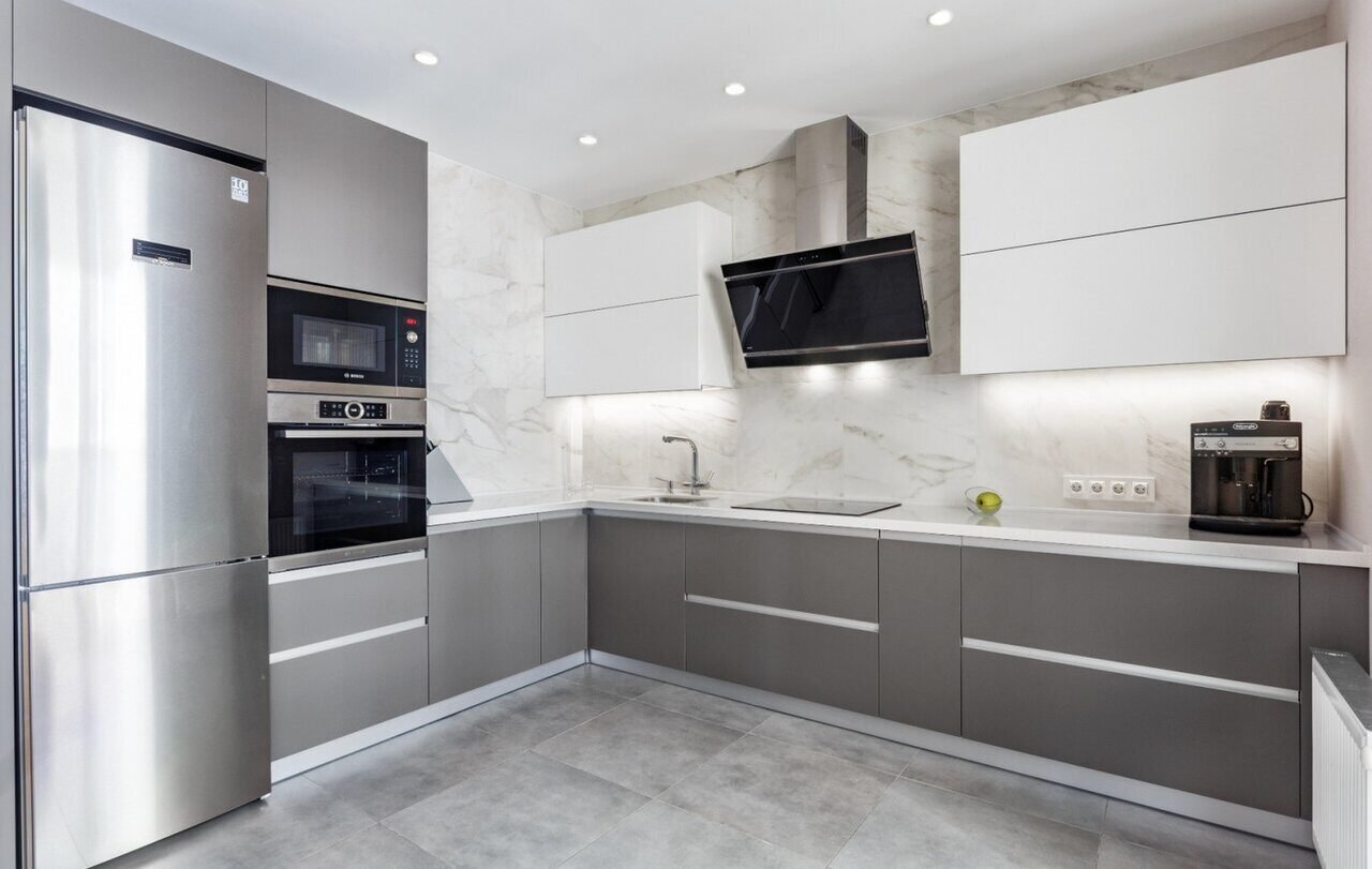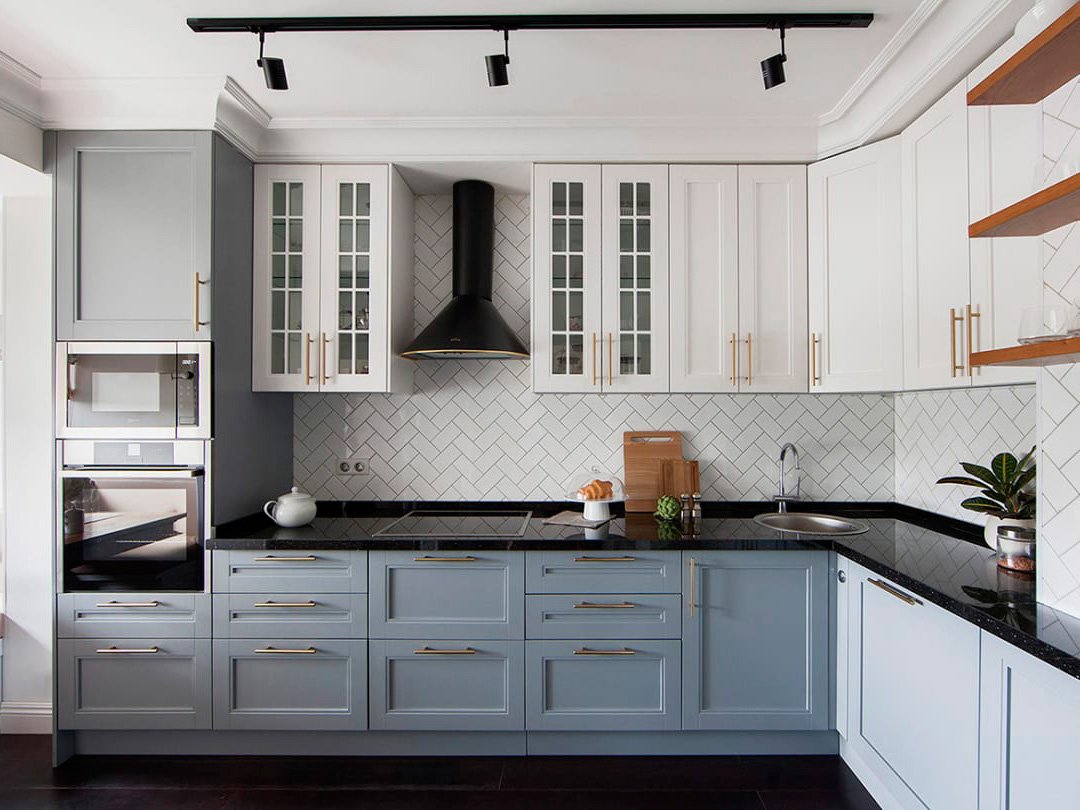 Бело графитовая кухня