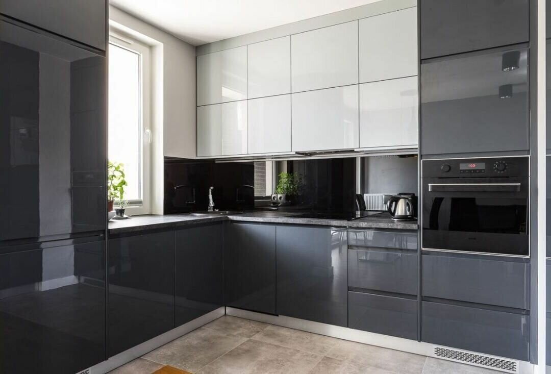 Кухня графит с белым глянец