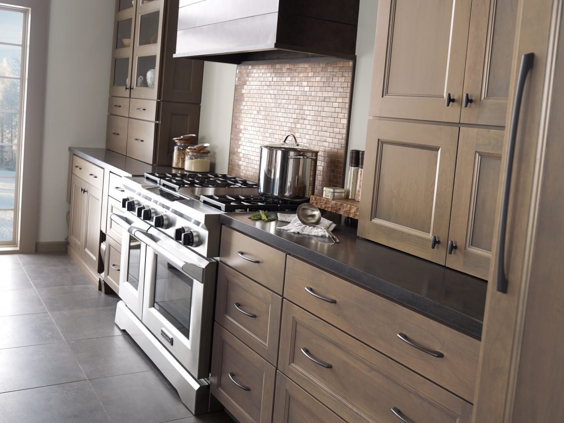 Кухня серая с коричневым