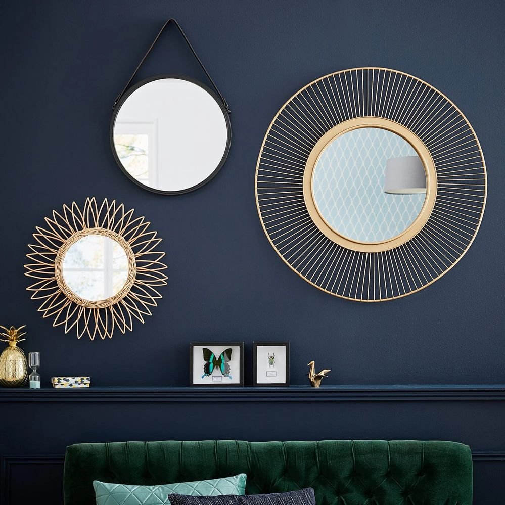 Зеркало в виде солнца в интерьере