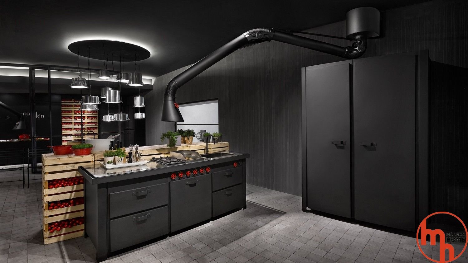 Вытяжка в стиле лофт в интерьере