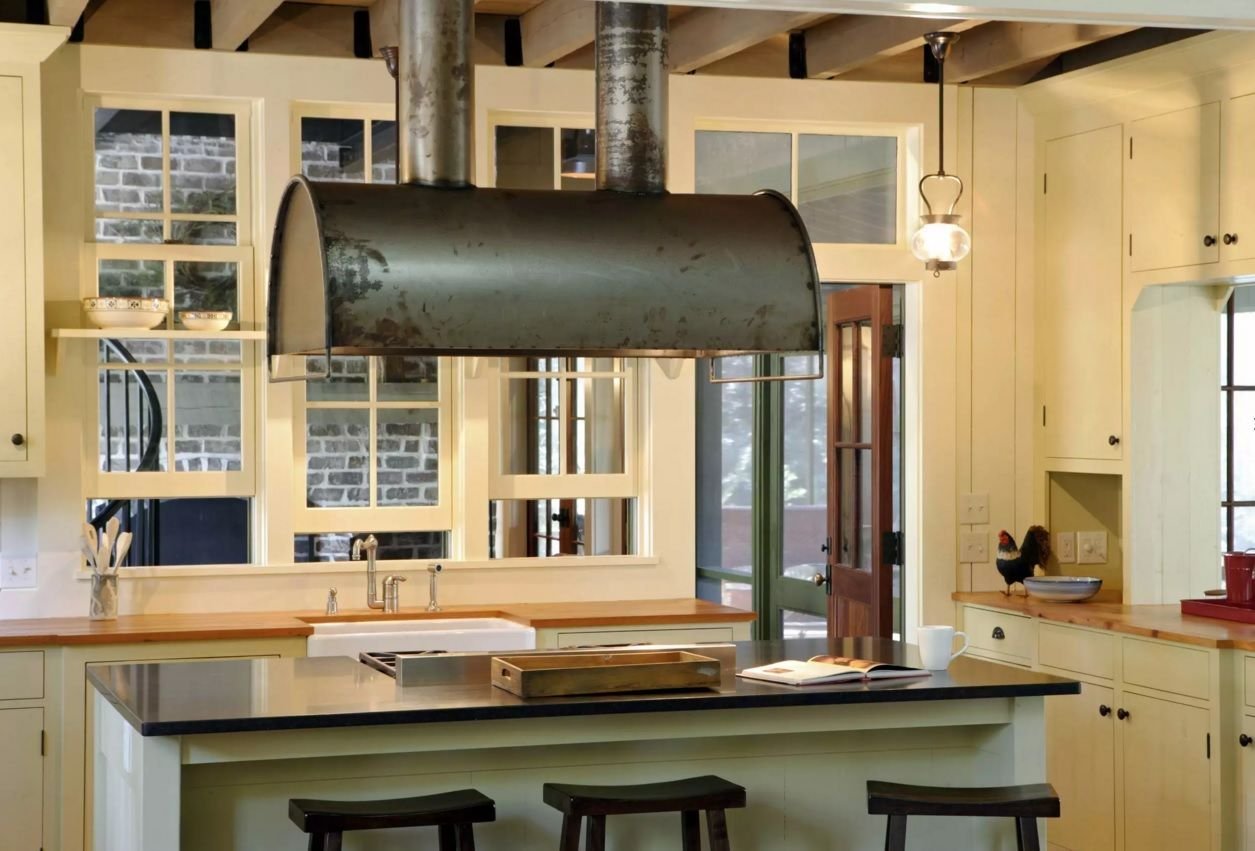 Вытяжка над островом лофт