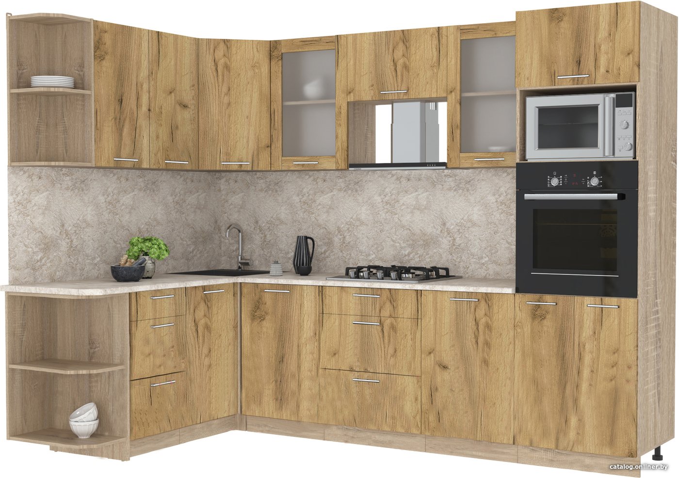 Кухня Дуся м 2,0 белый бриллиант/дуб Бунратти (ДСВ)