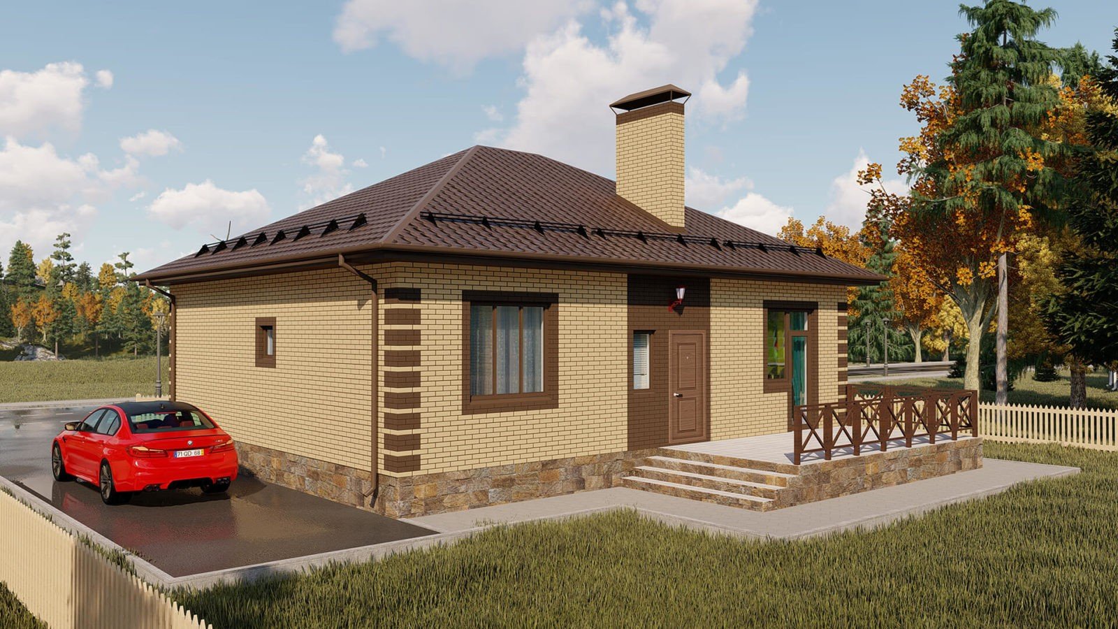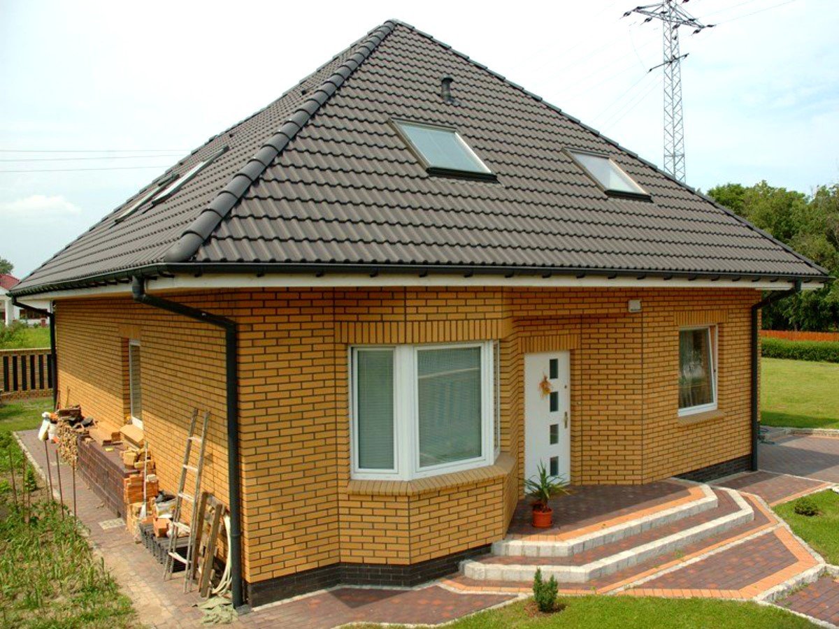 Одноэтажный дом из желтого кирпича