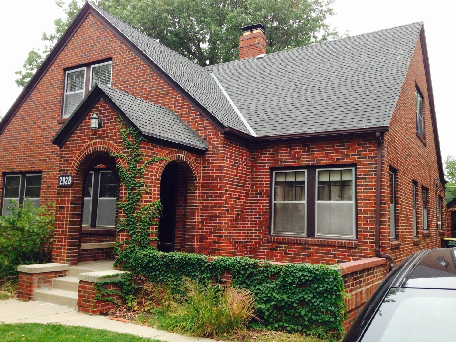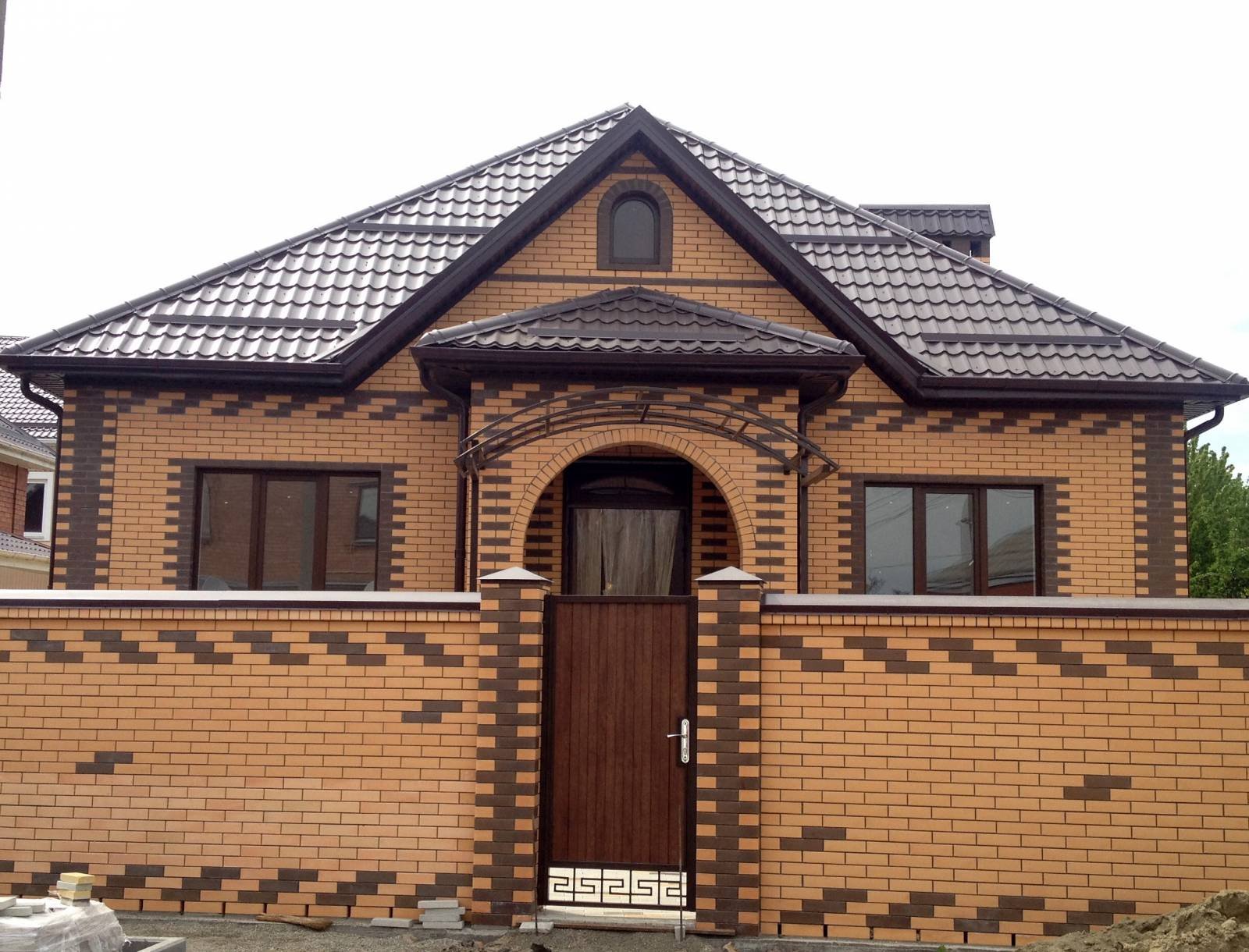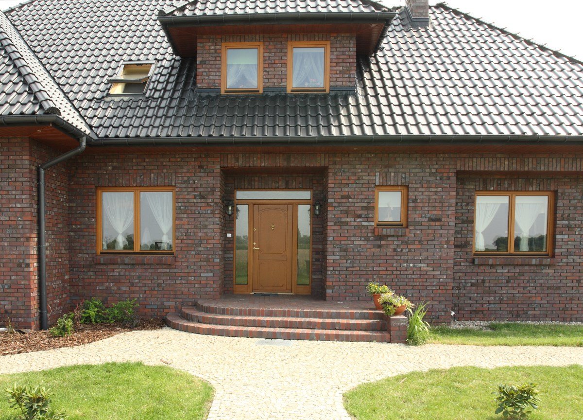 Красно коричневый кирпичный дом