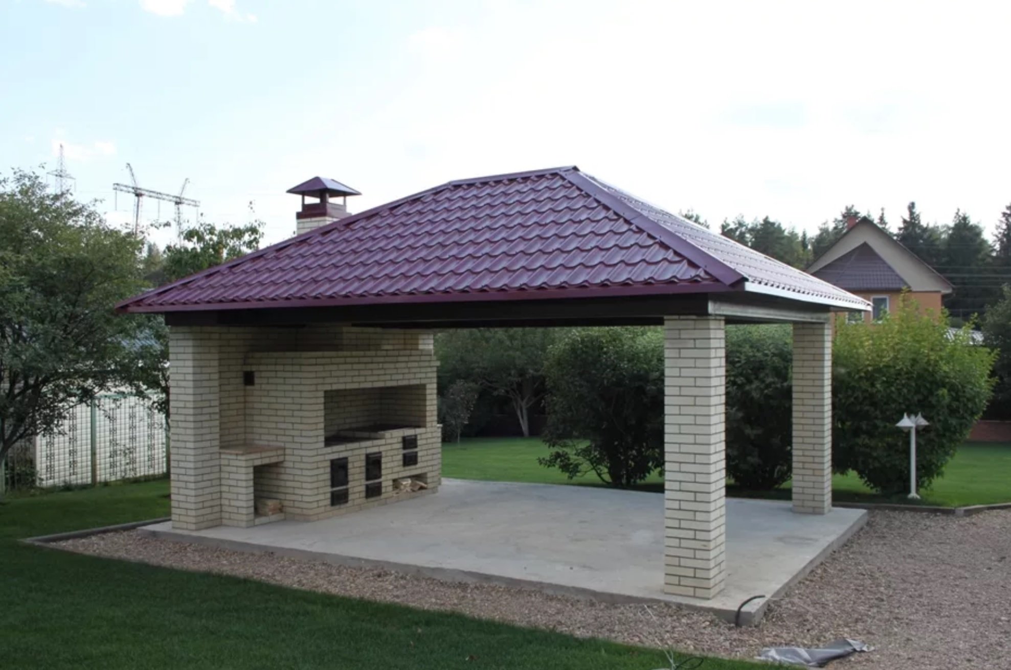 Беседка с четырехскатной крышей и мангалом