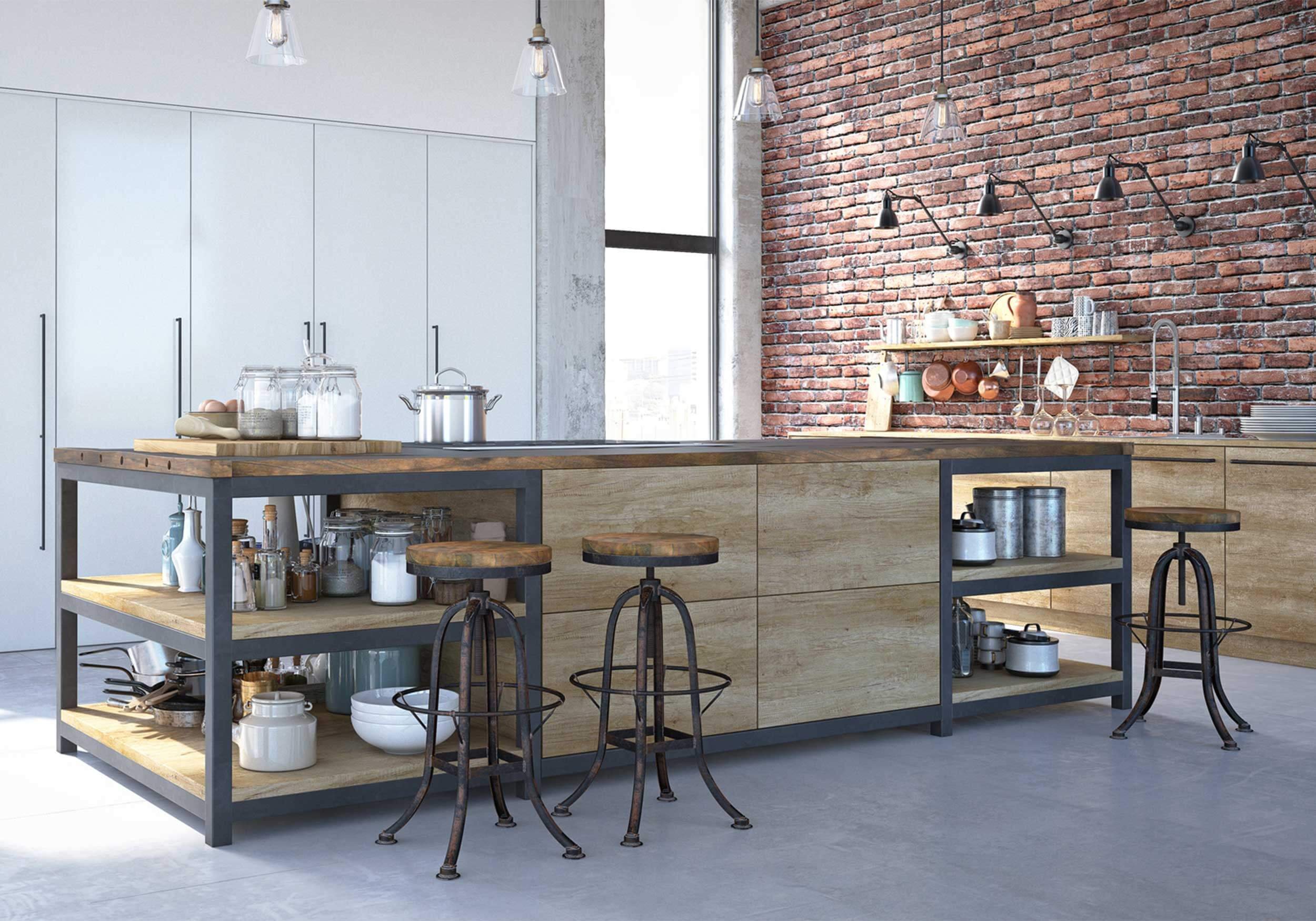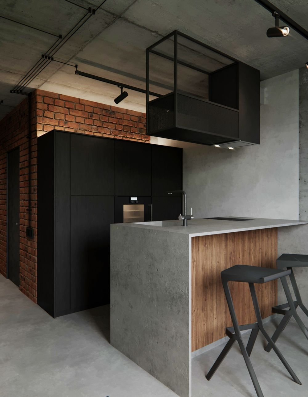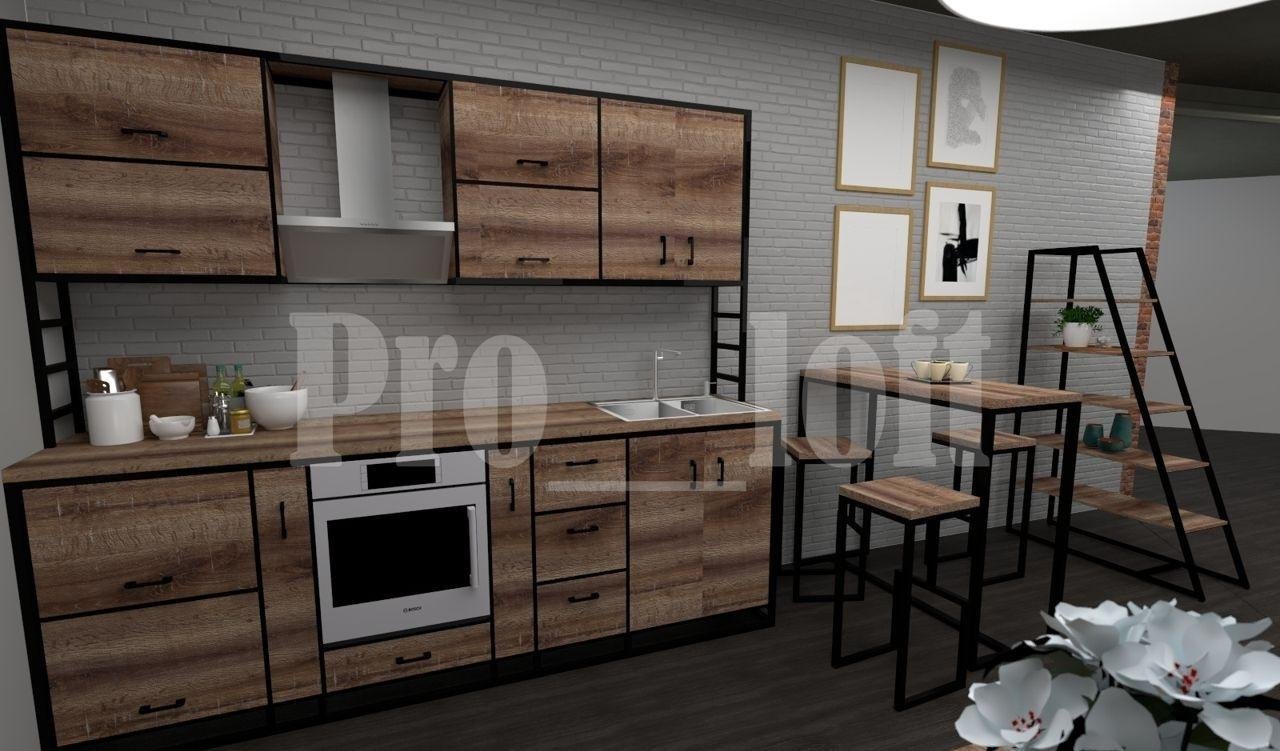 Кухня лофт МЕТАЛЛПРОФИЛЬ дерево