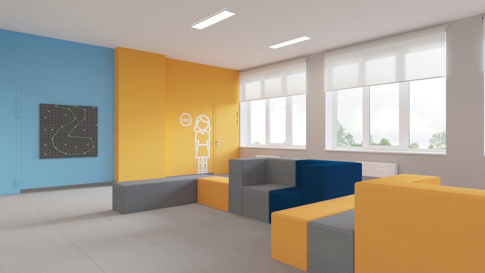 Холл в детском саду современный