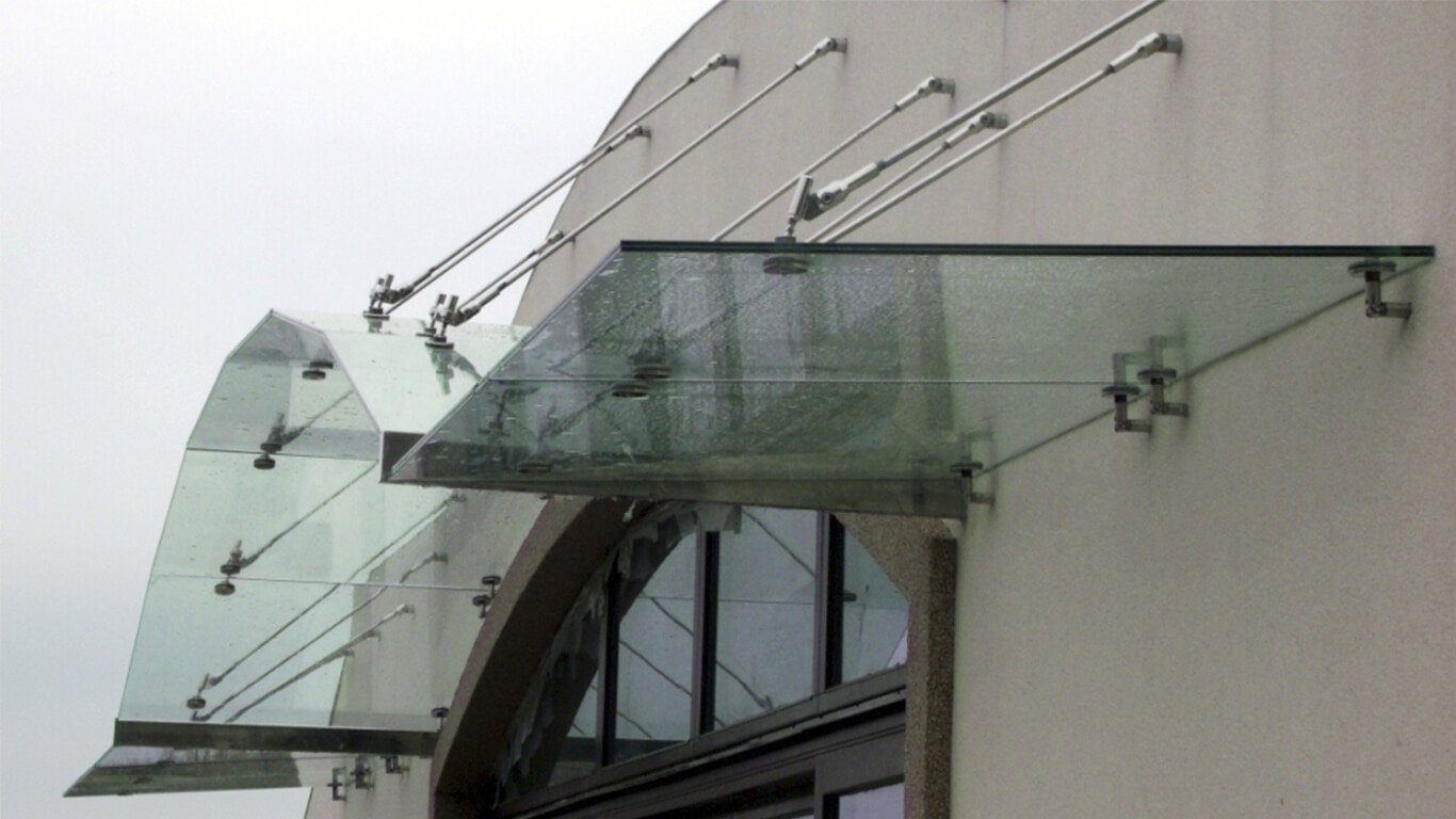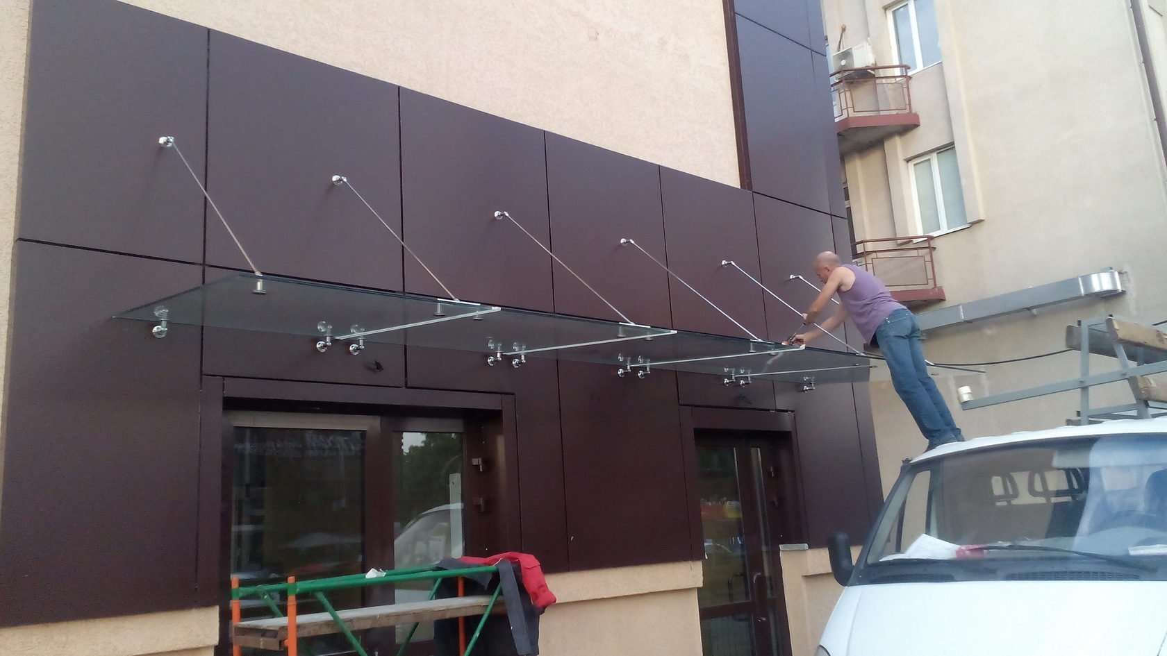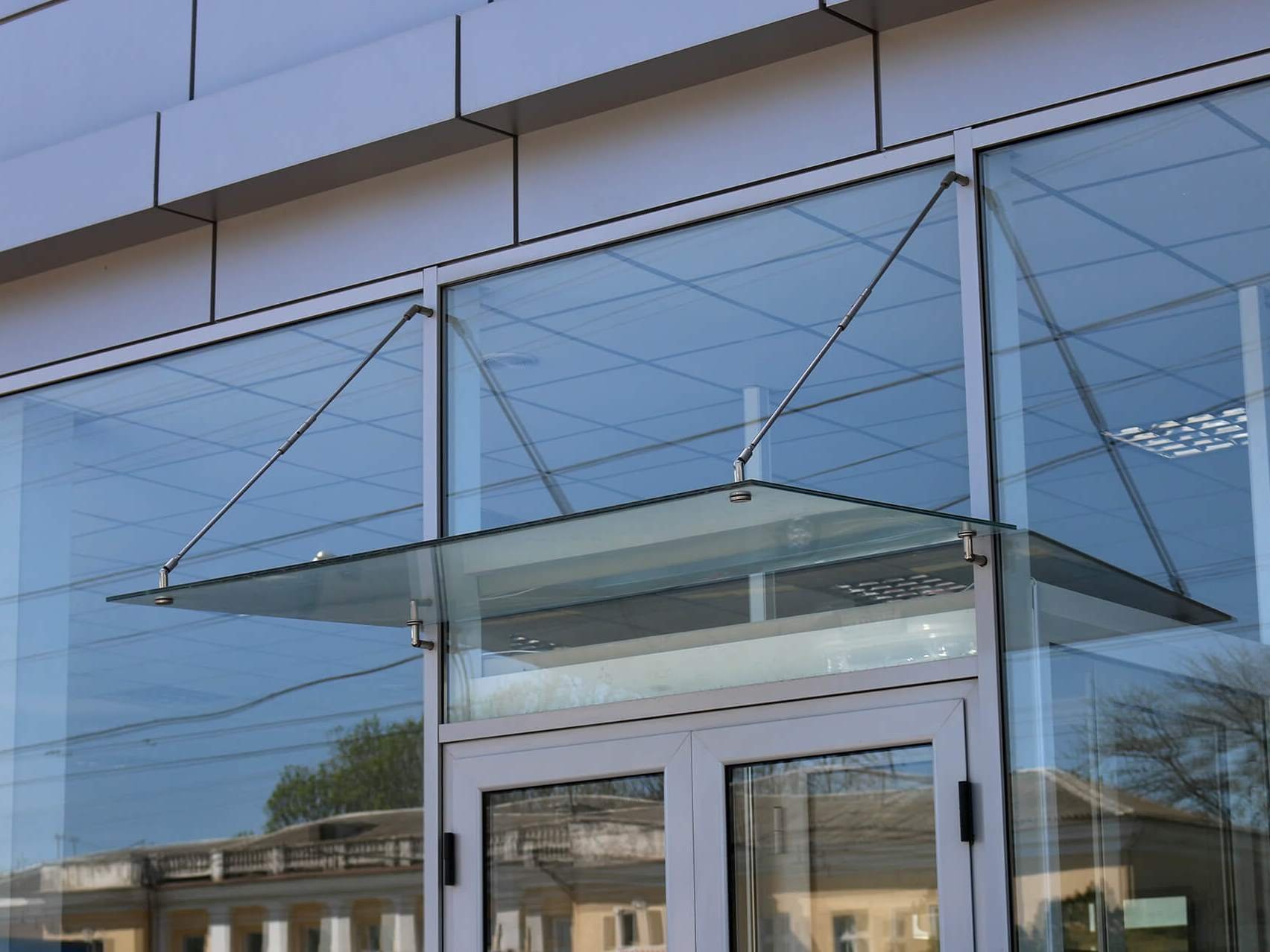 Стеклянный козырек на тягах YP-3 размер 1500х2000 мм