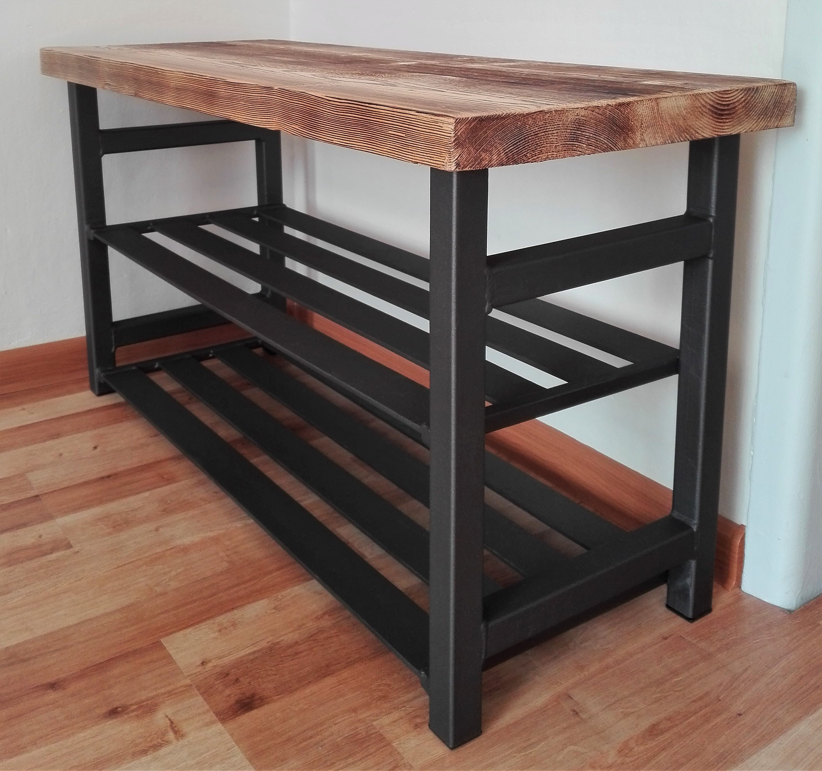 Полка для обуви из металла и дерева