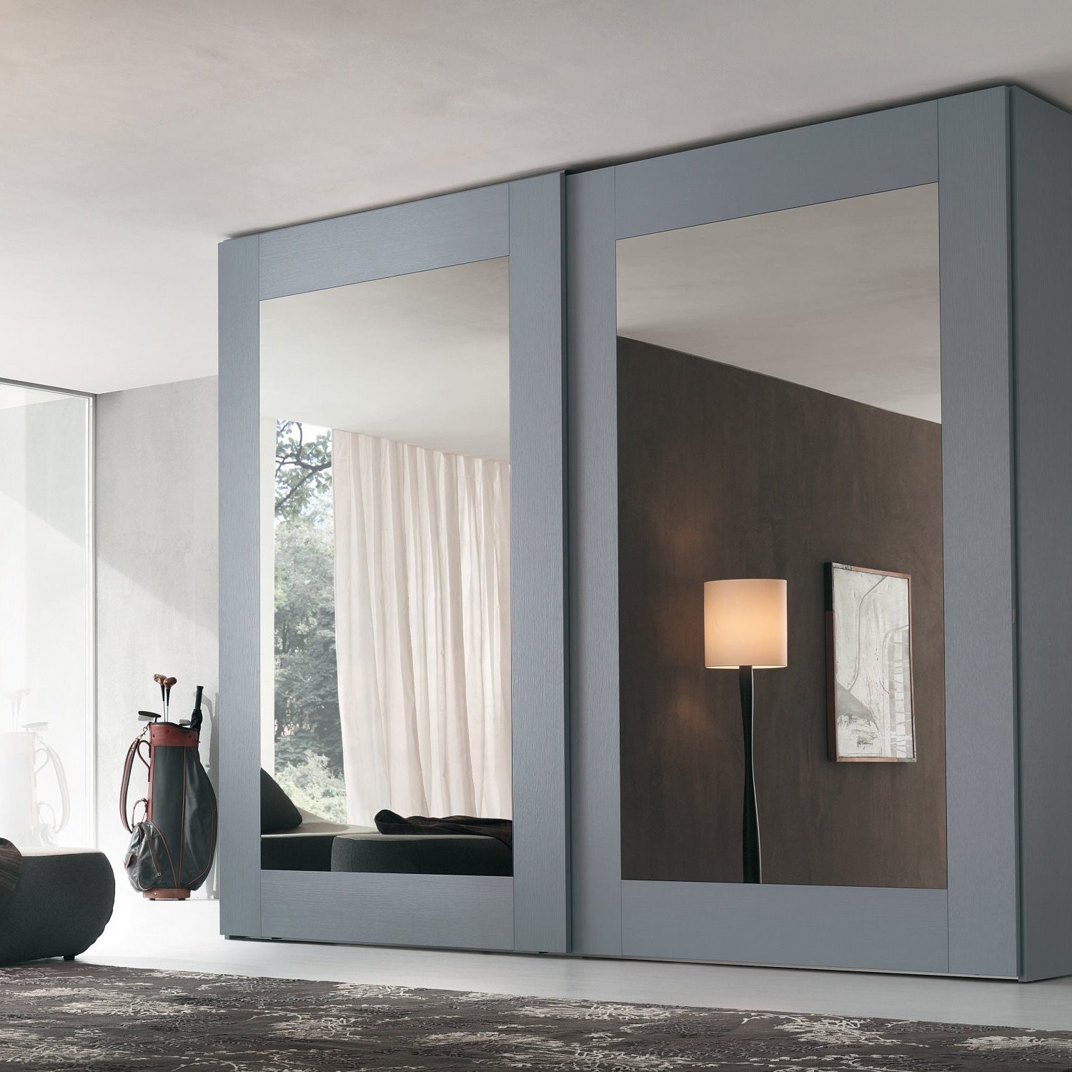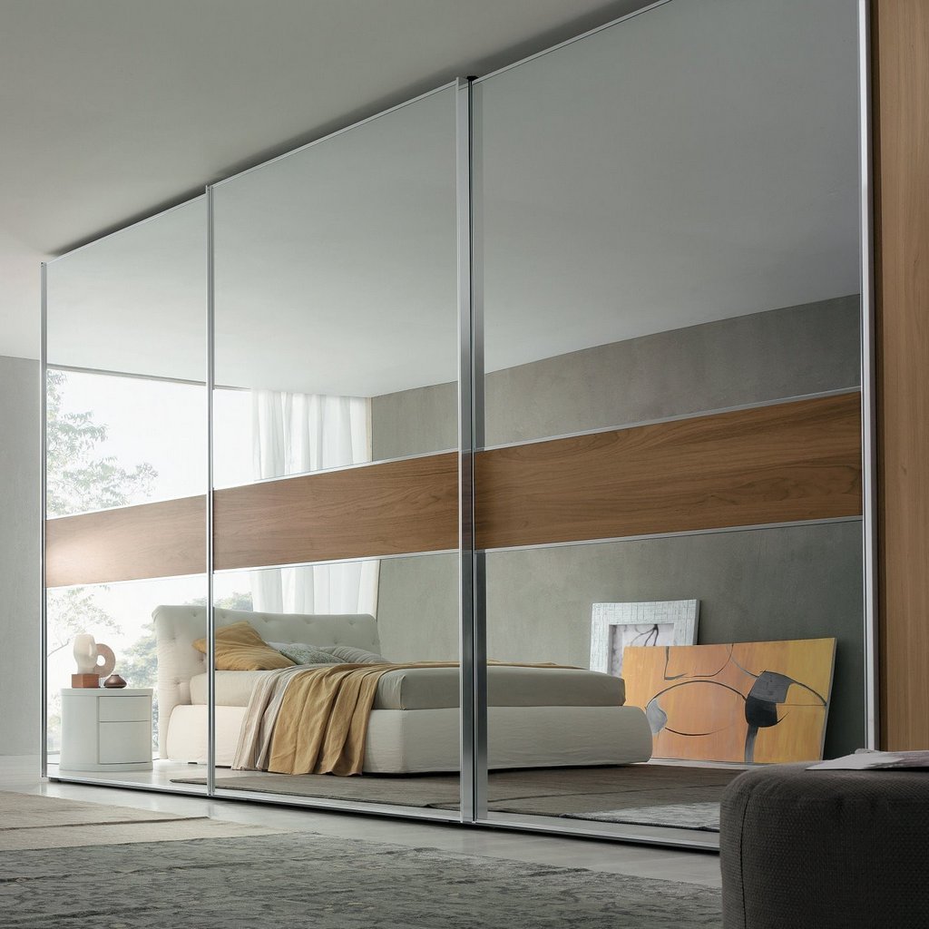 Зеркальные двери купе в интерьере
