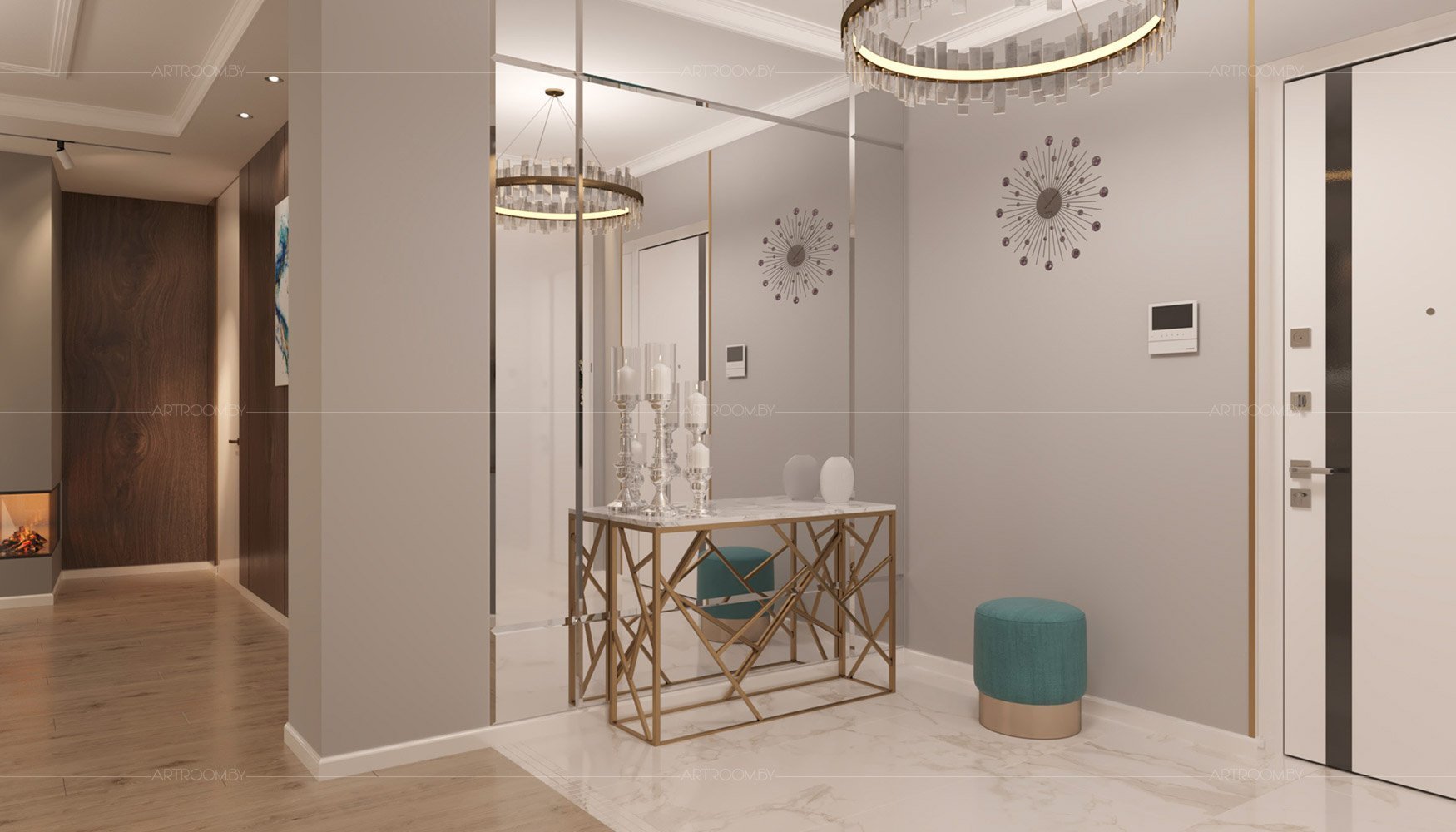 Прихожая с зеркалом в современном стиле