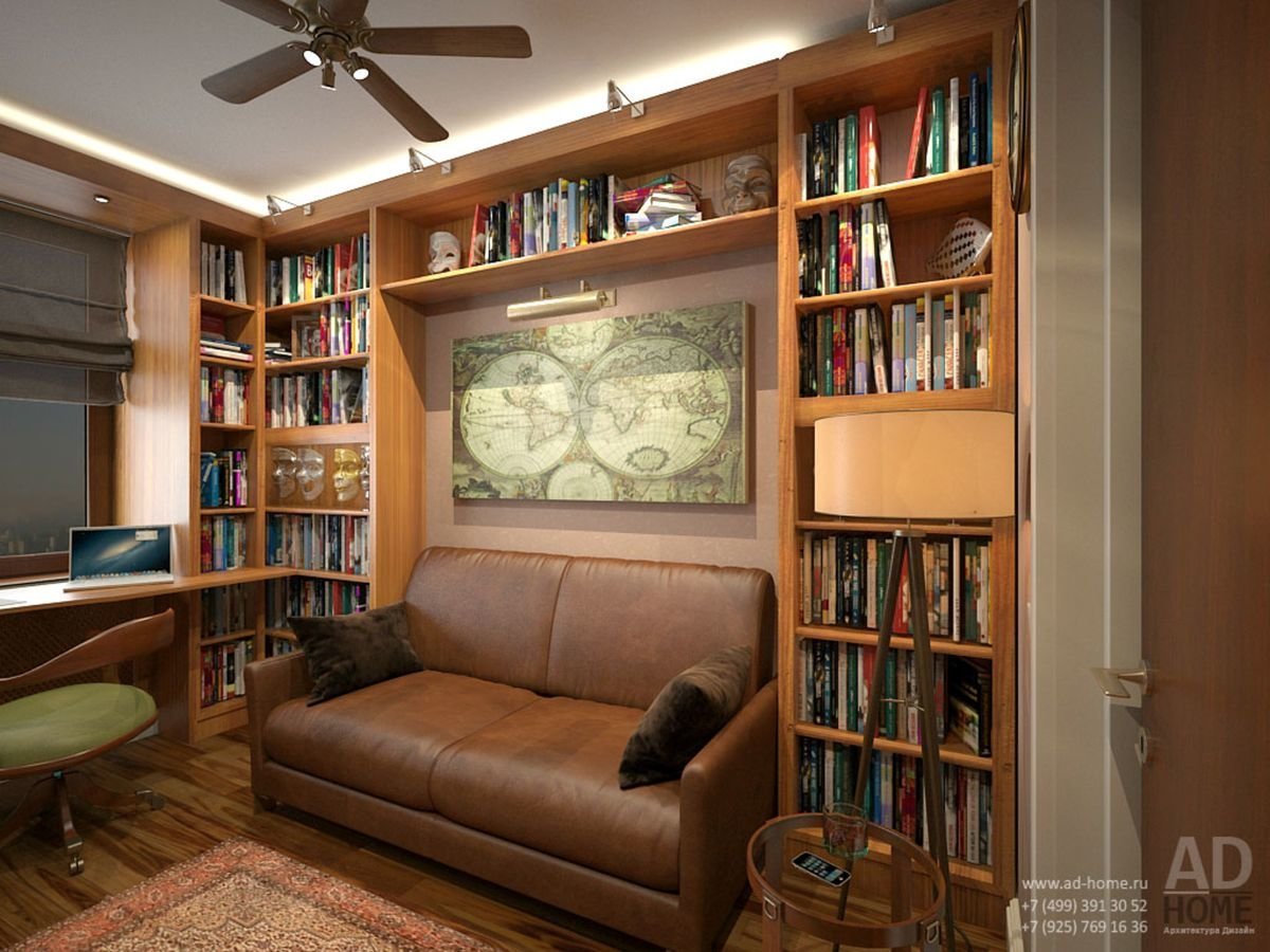 Интерьер библиотеки в квартире