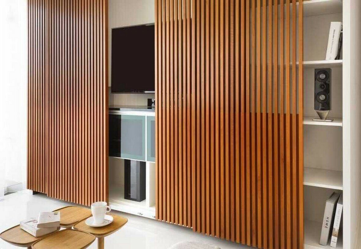 Шкаф с деревянными рейками