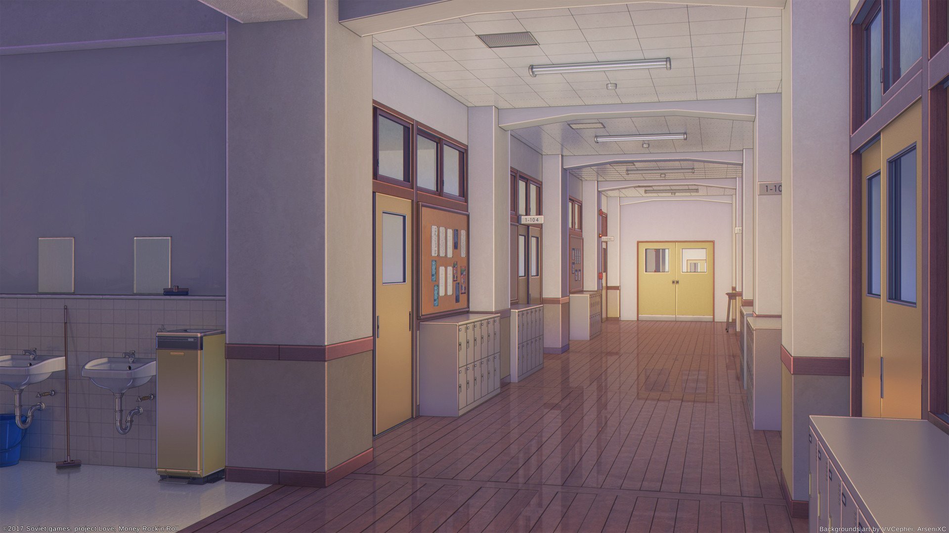Коридор школы аниме