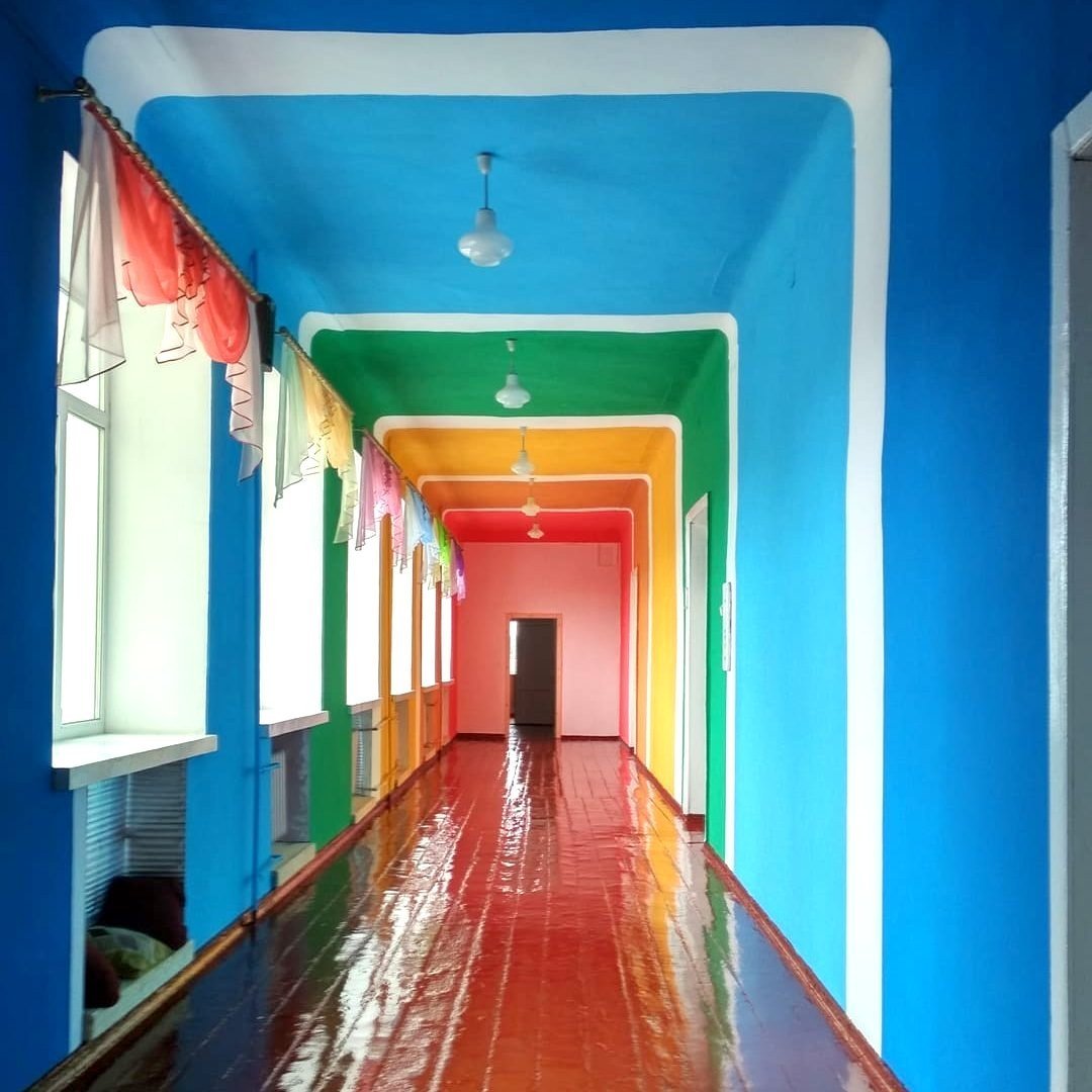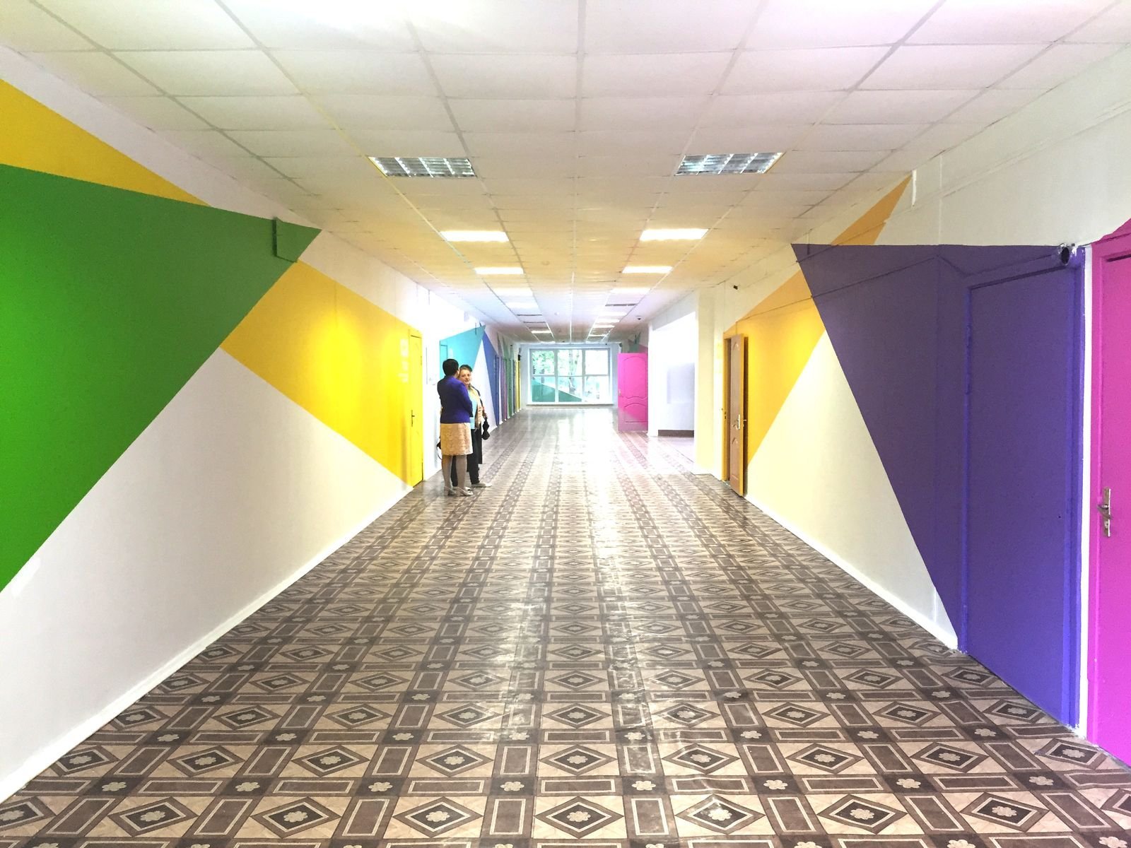 Разноцветные стены в школе