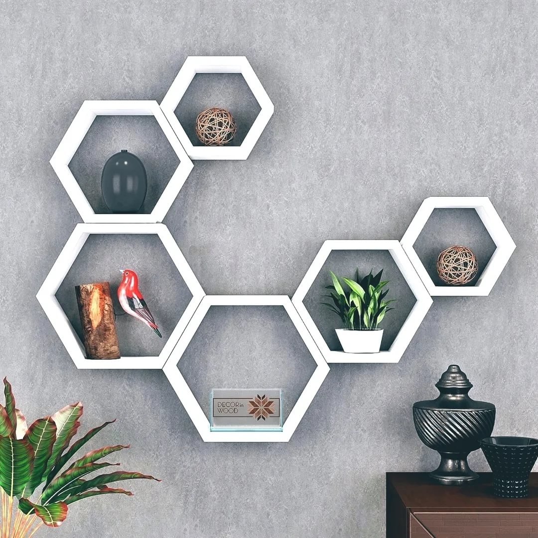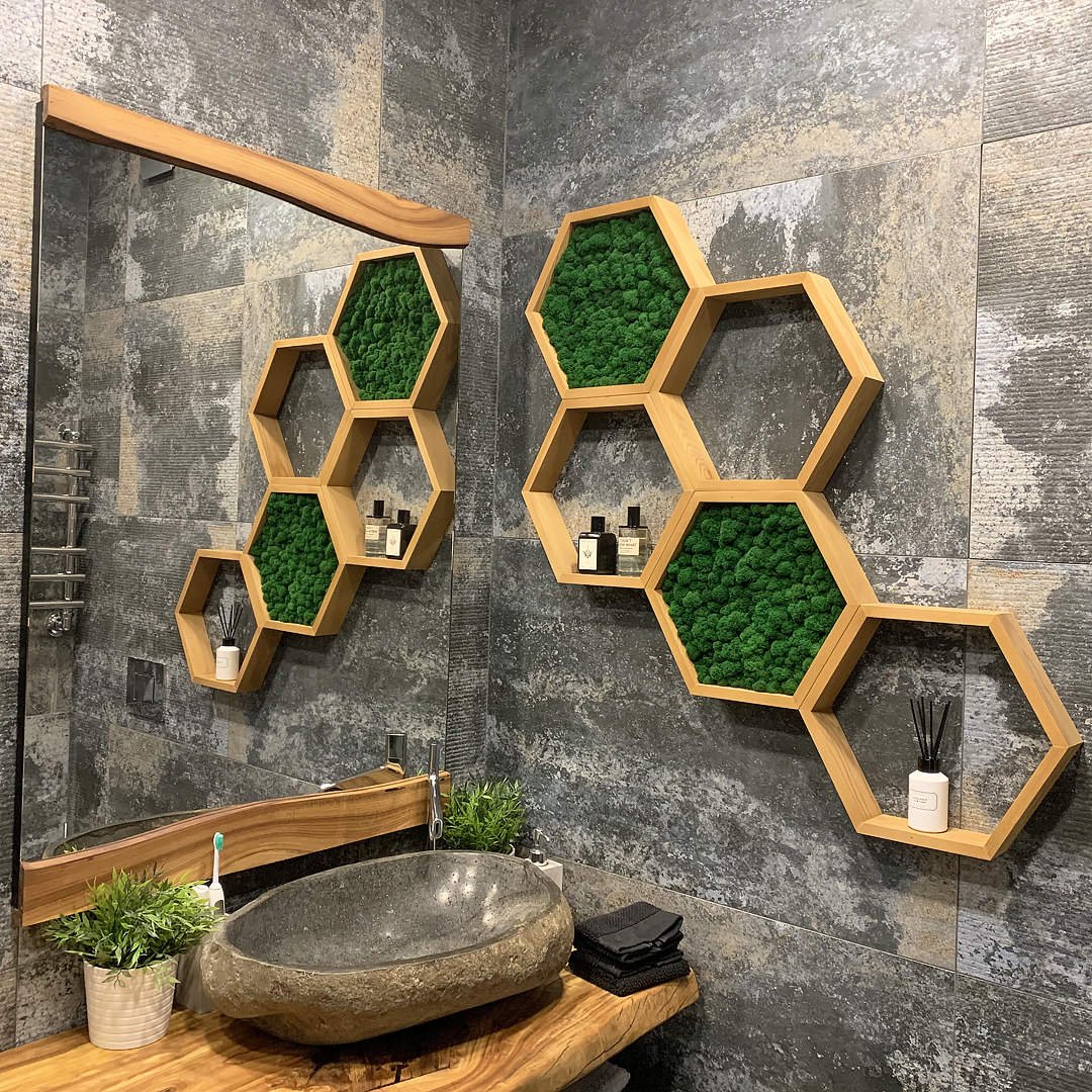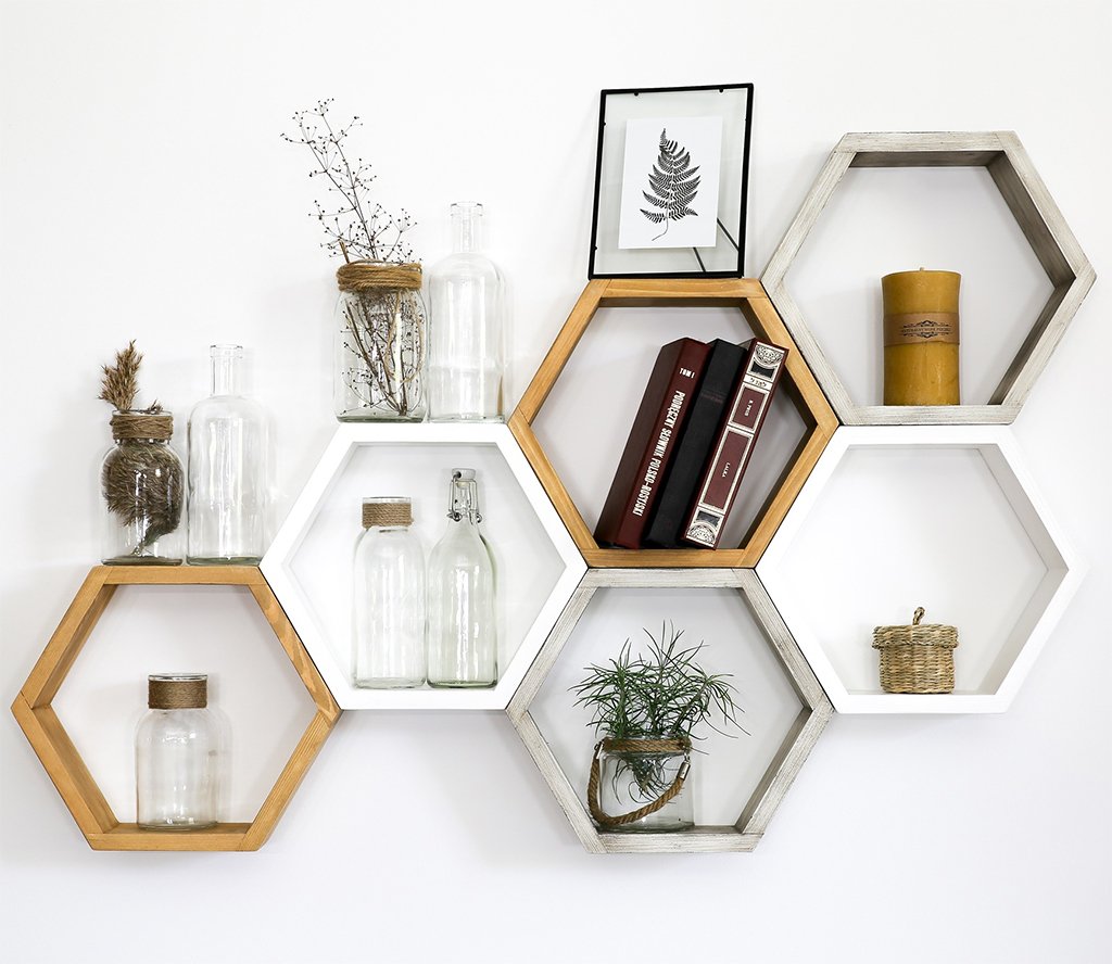 Полочки в виде сот в интерьере