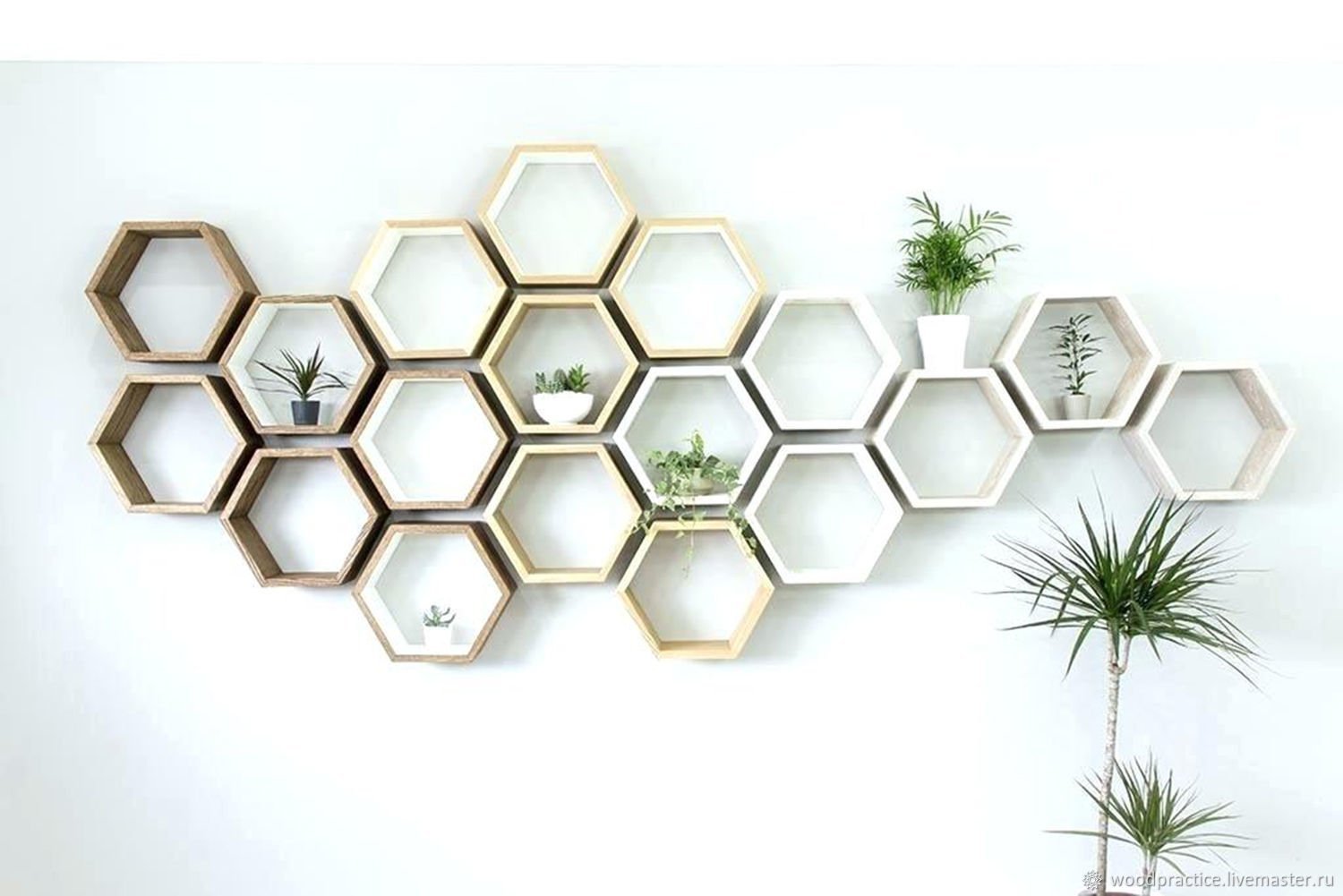 Полки в виде сот из дерева