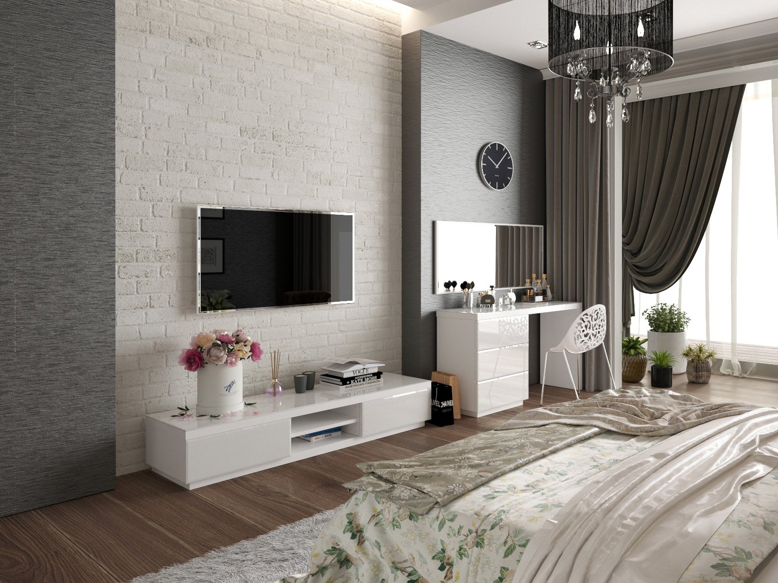 ТВ зона в спальне с туалетным столиком