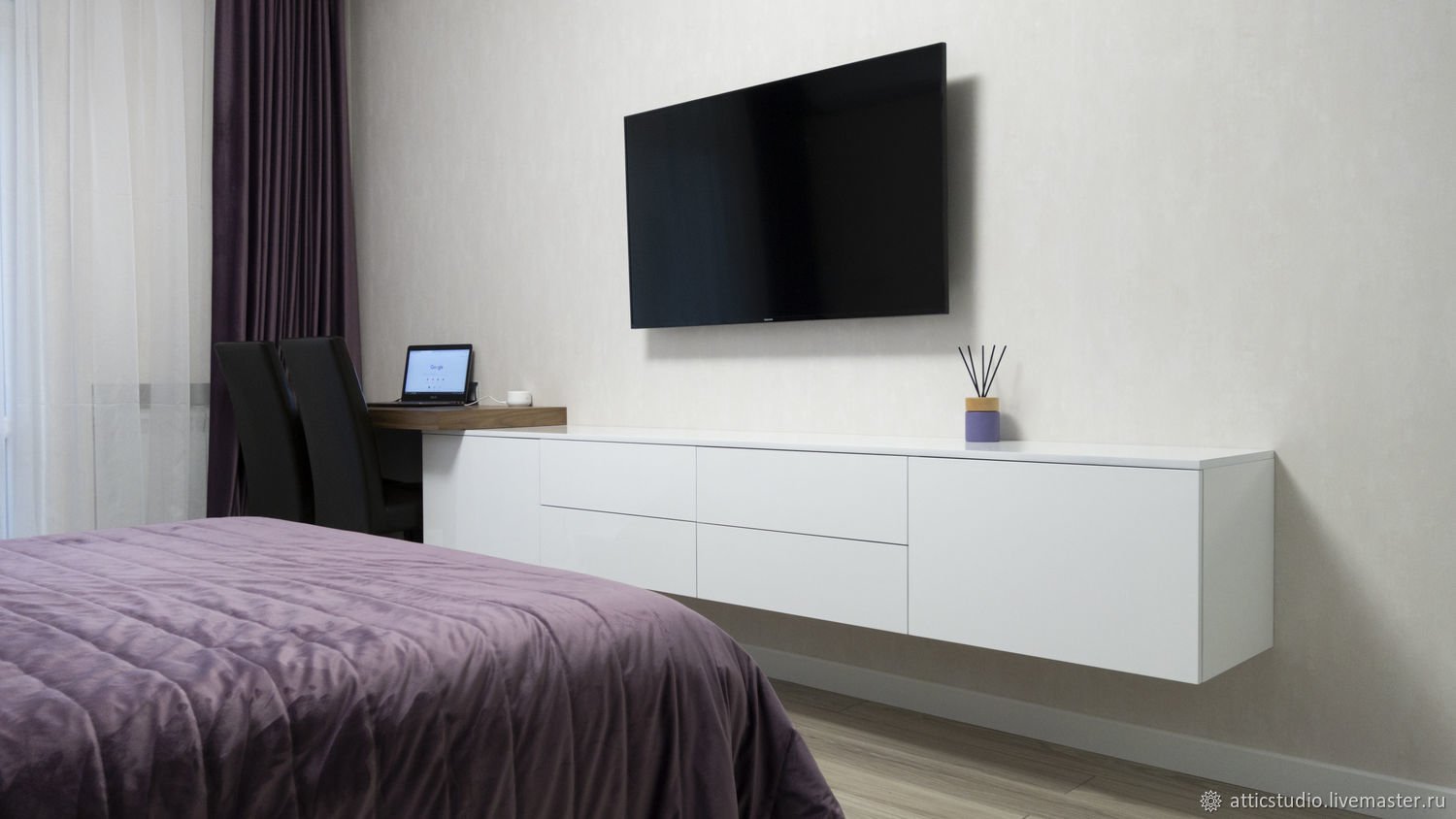 Телевизор на стене в спальне