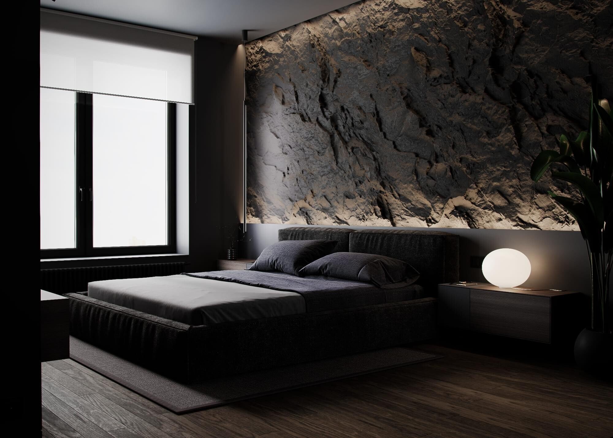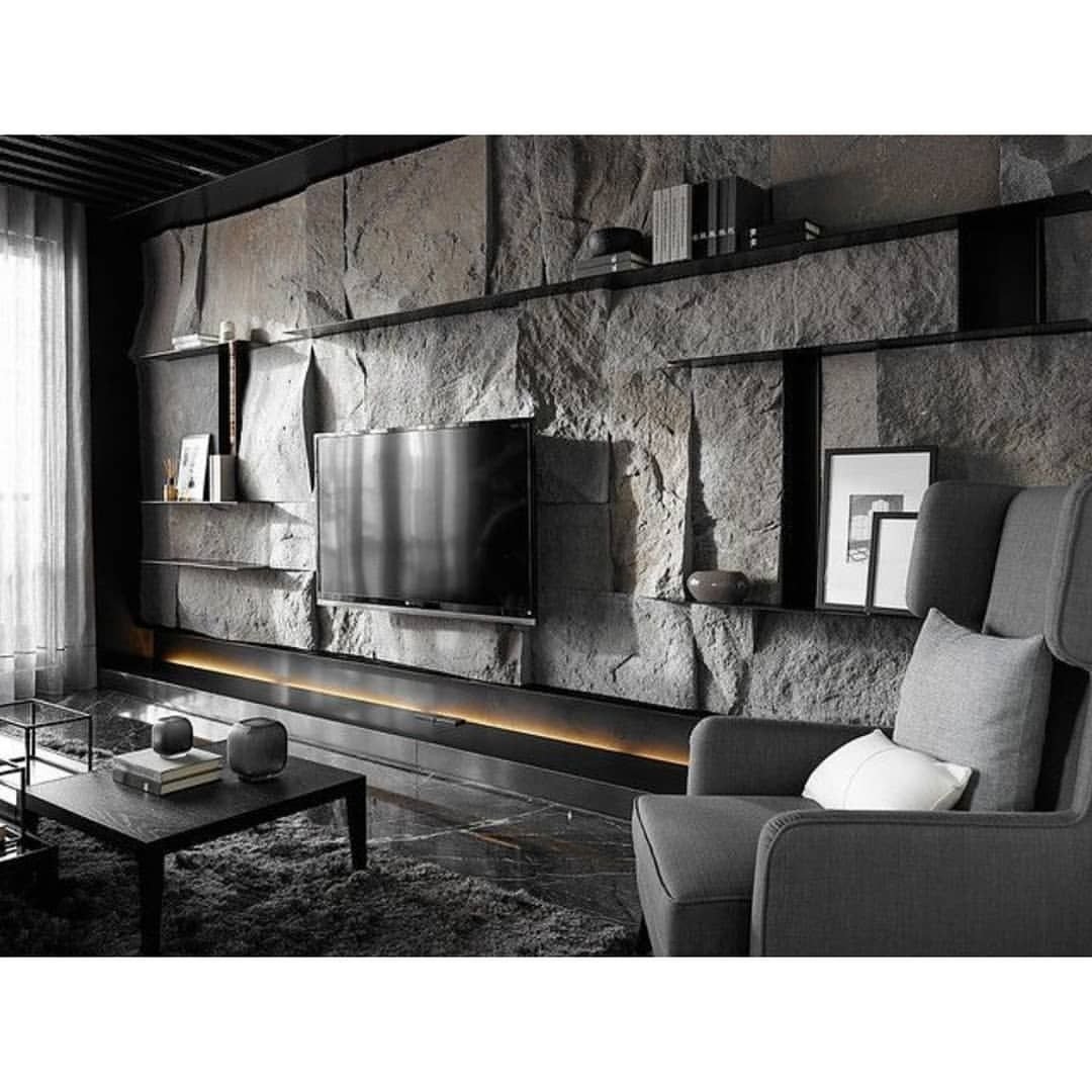 Стена под скалу в интерьере