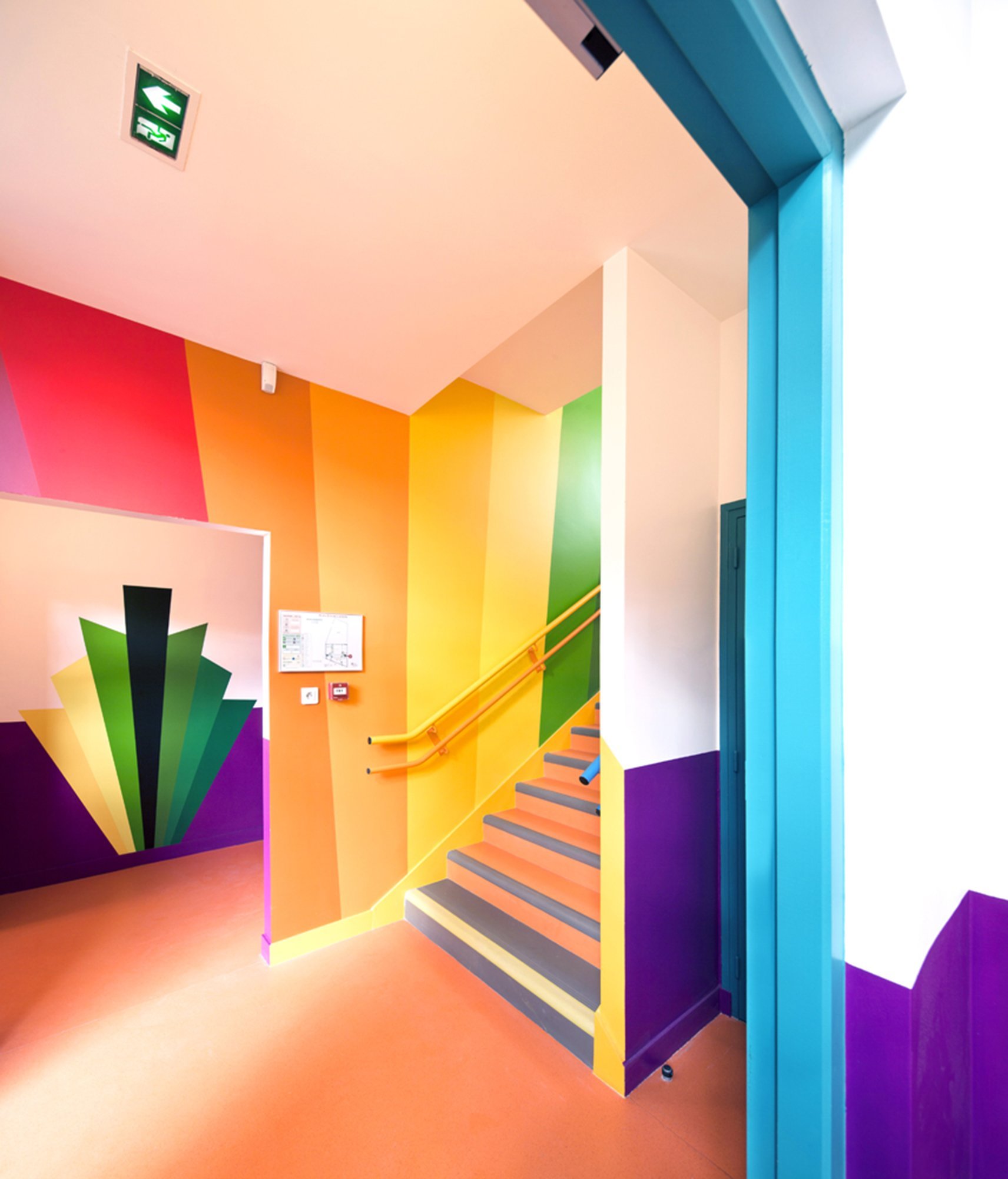 Разноцветные стены в школе