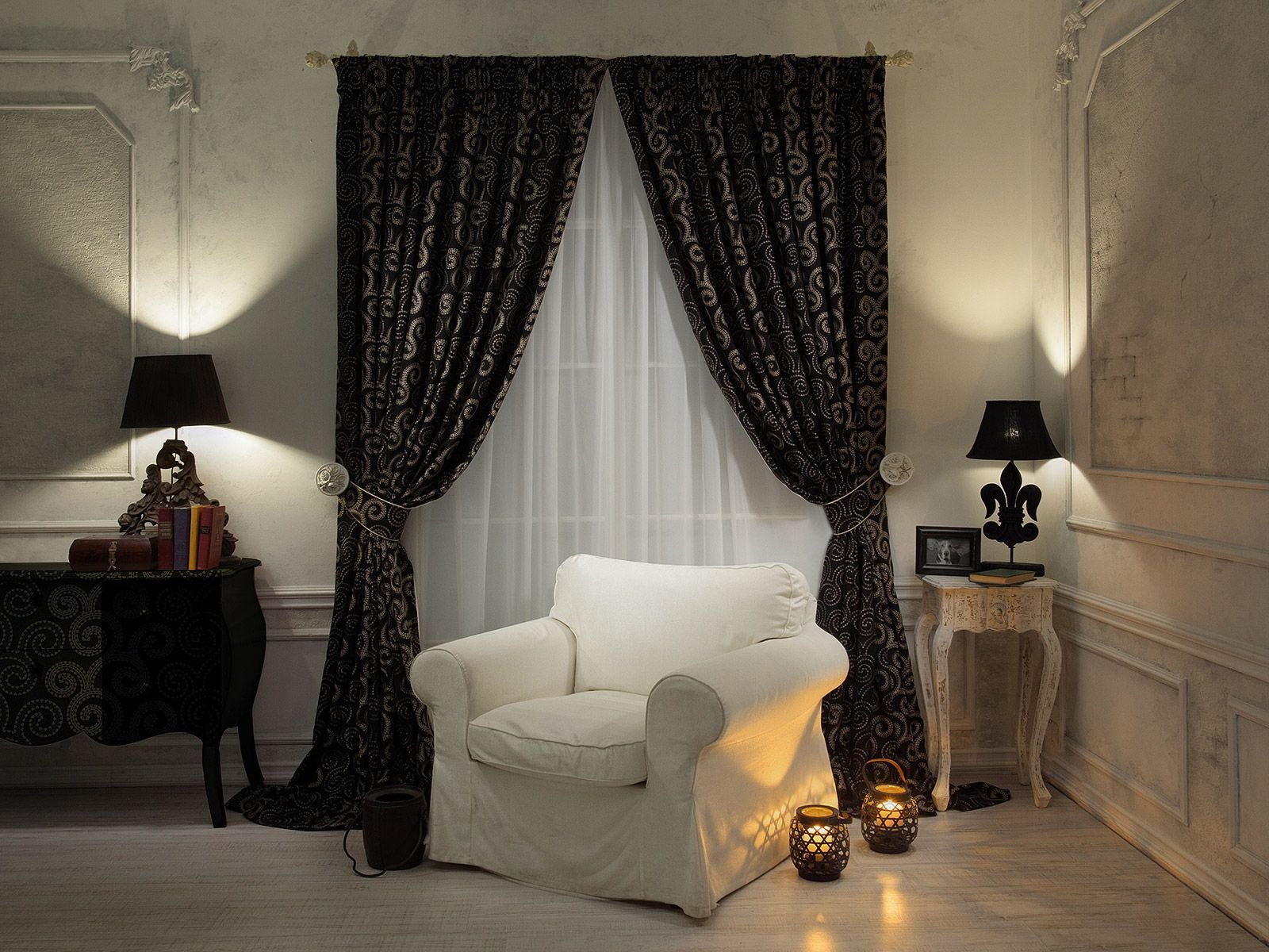 Темные шторы в интерьере