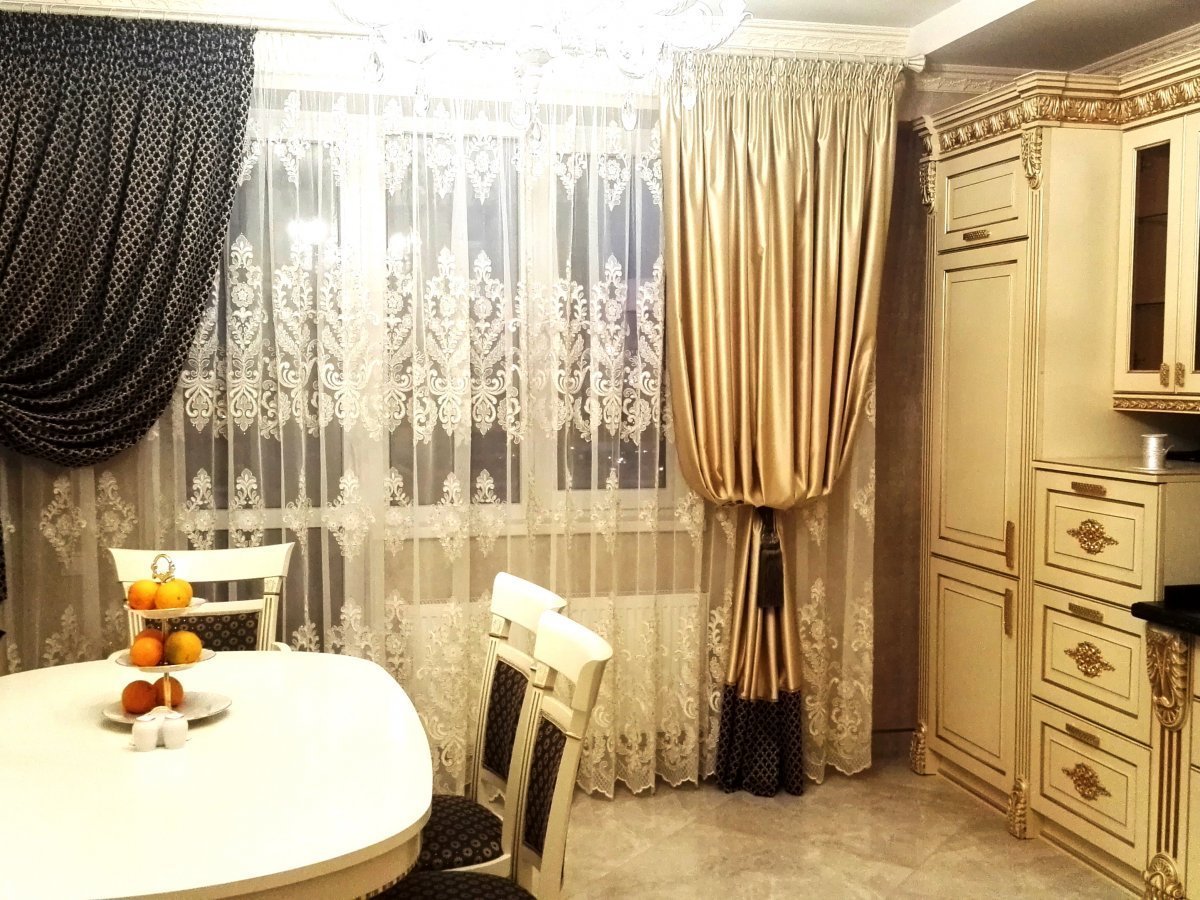 Золотистые шторы на кухню